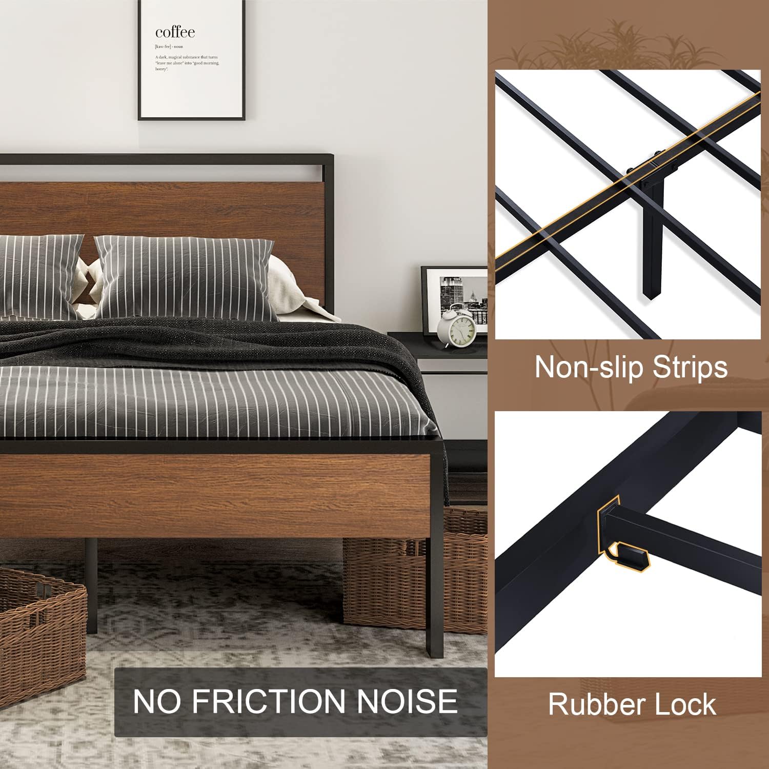 •  Easy Assembly: No further tools are needed for this metal bed frame. It only takes about 30 mins for an adult to put it together