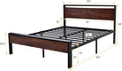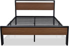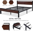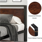 • Unique Design: The combination of rustic style headboard and footboard with retro frosted metal slats creates a strong industrial/rustic flair, adding an industrial and unique touch to your room. The headboard consists of a waterproof & scratchproof wood board