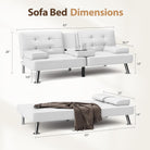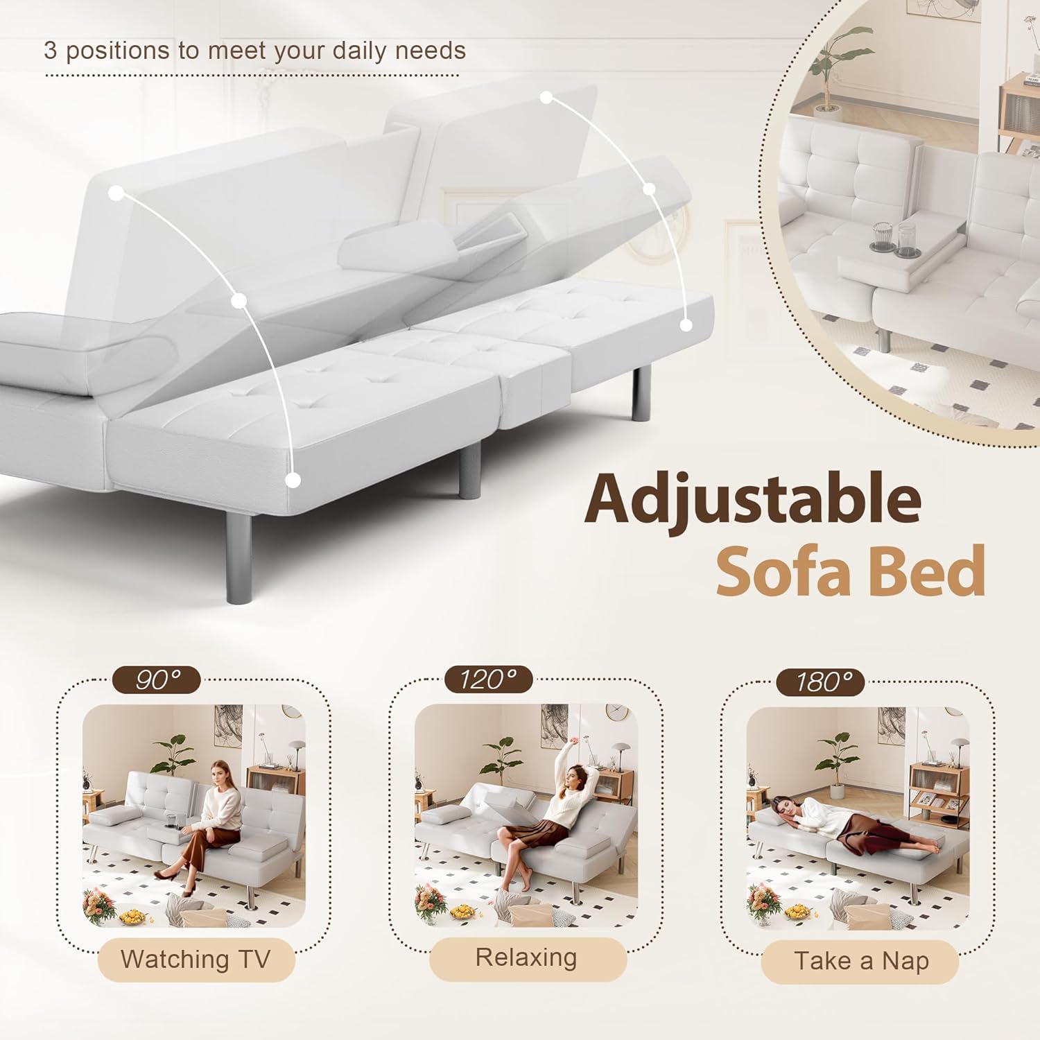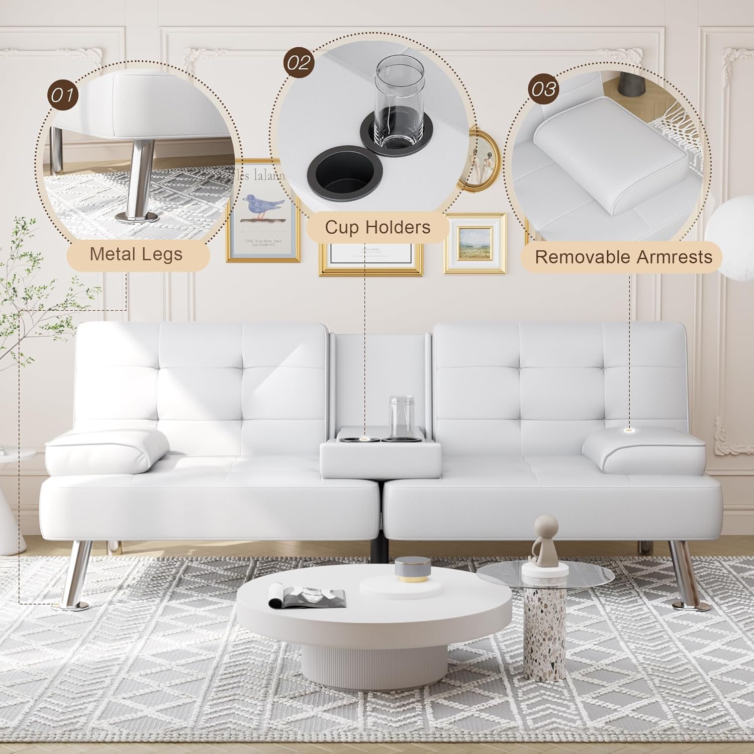 - Thoughtful Design: This sofa bed is made of tufted faux leather and 4 chrome-plated metal legs for durability, with space to store cups and removable armrests for convenience!