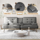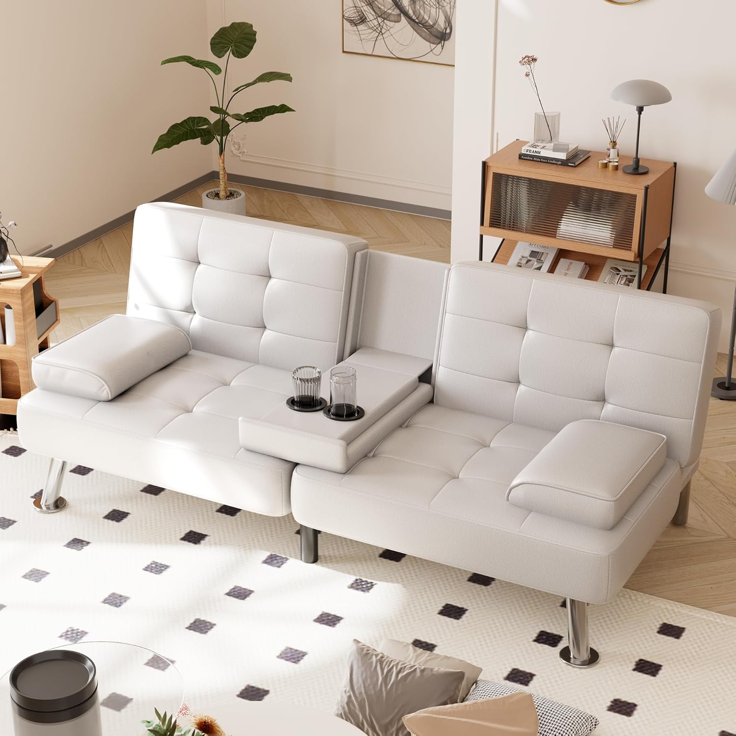 - Seating for 2: With a weight capacity of up to 500lbs, this stylish futon sofa allows you to lounge in comfort while preventing your favourite drink with the cup holder in the middle!