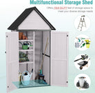 • Large Capacity: Offering a generous space of 2.5 x 1.4FT, this outdoor shed accommodates a variety of items, from tools to garden accessories, bicycles to outdoor toys.