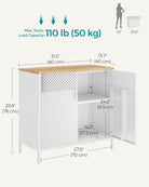 SONGMICS Storage Cabinet, Metal Cabinet, Sideboard with 2 Doors, 15.7 x 31.5 x 29.9 inches
