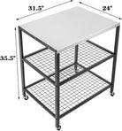 Stainless Steel Outdoor Grill Cart Pizza Oven Stand Trolley Table with Wheels Three-Shelf Movable Food Prep and Work Table Heavy Duty Grill Carts Outdoor Cart 31.5"×24"×35.5"