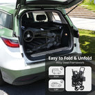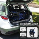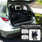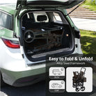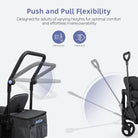 • Easy to Use: Conveniently folds for storage and transport, fitting most car trunks. Includes a one-foot brake lever for safety and an adjustable handle for effortless control.