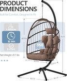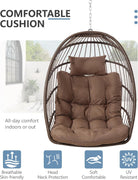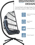 - Heavy-Duty & Rust-Resistant Build: Made with a powder-coated steel frame and hand-woven all-weather wicker, our hanging egg chair supports 350 lbs and resists rust, fading, and wear better than most outdoor egg chairs