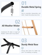 - Easy, Tool-Free Assembly: Set up your wicker egg chair in under 30 minutes—no tools, no stress. Clear instructions make solo installation a breeze. Compared to most patio egg chairs, you'll enjoy quicker setup and faster relaxation