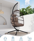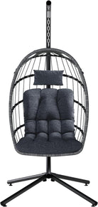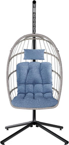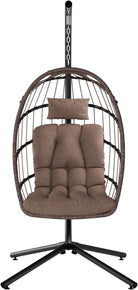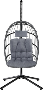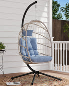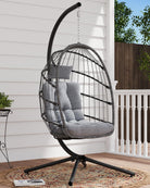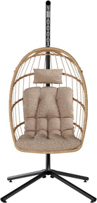 SWITTE Egg Chair Outdoor with Stand, Indoor Wicker Hanging Egg Swing Chair with Cushion, 350lbs Capacity for Patio, Bedroom