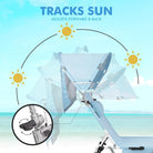 【Tanning Chair with Sun Canopy】 The sun shade protects your face from harsh sunlight, providing a comfortable space for electronic devices or reading without glare. Enjoy UPF 50+ Protection, shielding your skin from 99.5% of UVA and UVB rays. The canopy adjusts forward and backward to align with the sun's position, ensuring uninterrupted relaxation.