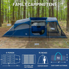 SPACIOUS INTERIOR: The TIMBER RIDGE tent measures 20' (14' + 6') x 8' x 76", designed to accommodate up to 8 people. It can fit 2 full-size airbeds along with additional camping gear. The center height of 76" allows for comfortable movement inside the tent, and the included screen room provides a separate, bug-free area for relaxation.