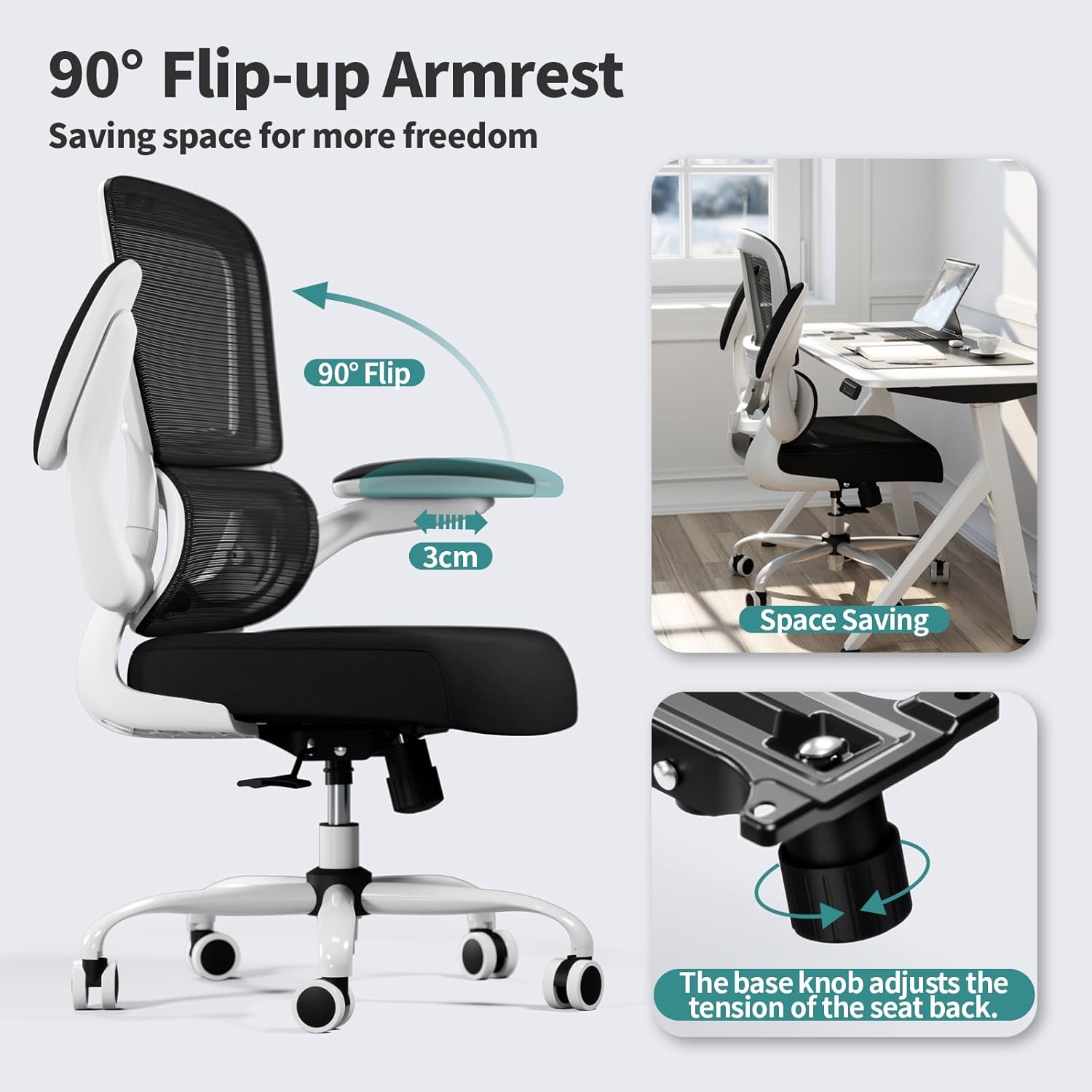 - Comfortable Breathable Mesh Seat: This office chair offers a spacious seating area. It can support up to 330 lbs. Its unique recline function allows you to tilt the backrest (90~120°) or sit upright freely