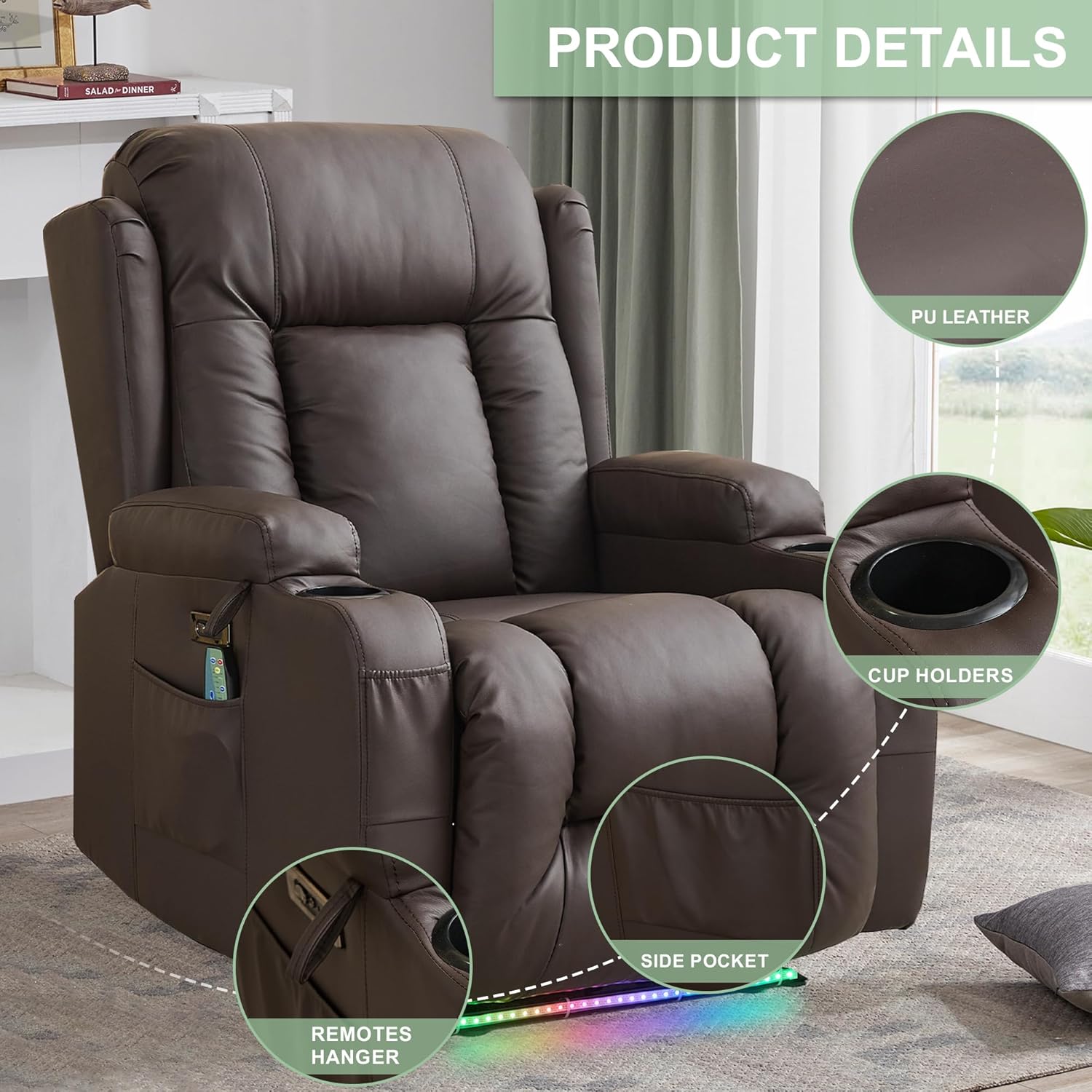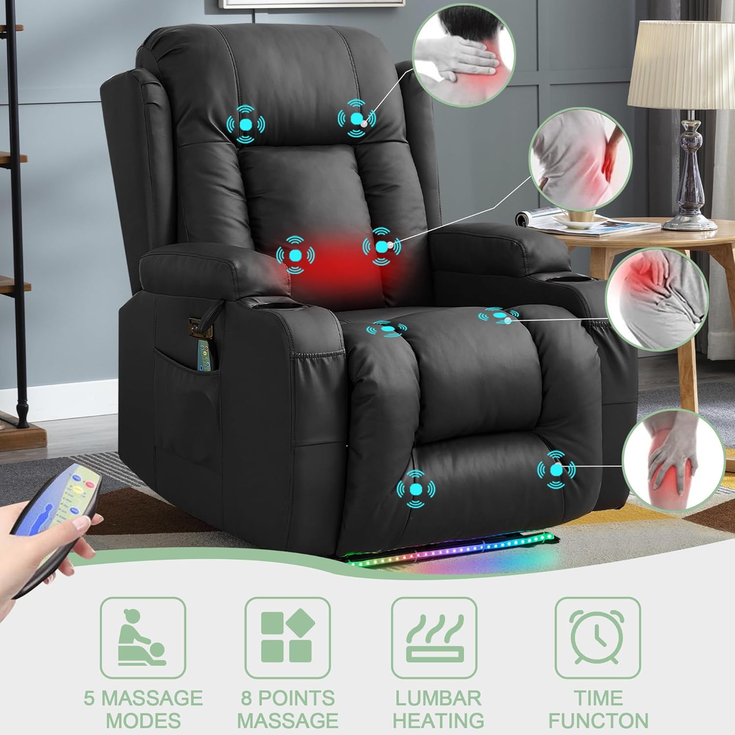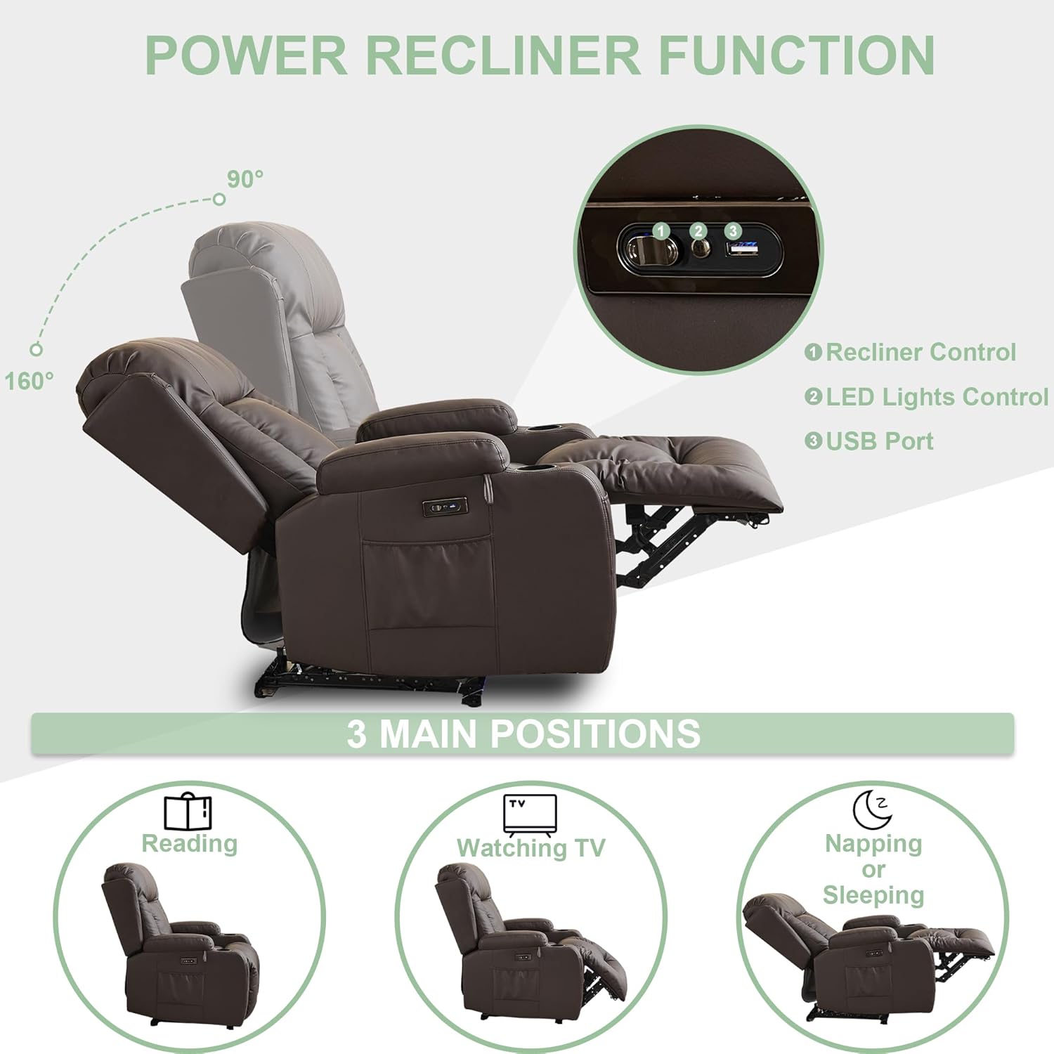 - Convenient LED Lighting & USB Charging: Built-in LED mood lighting creates a soothing ambiance, while the USB charging port (5V/1A) keeps your devices powered without leaving your seat—perfect for home theaters, offices, or bedrooms