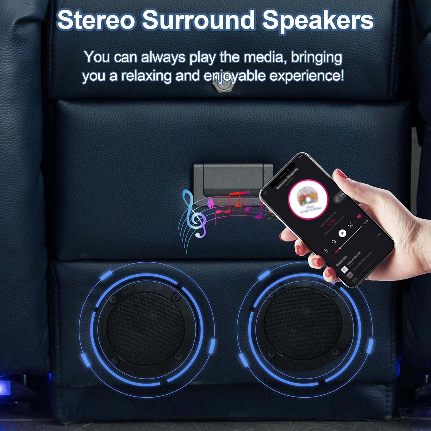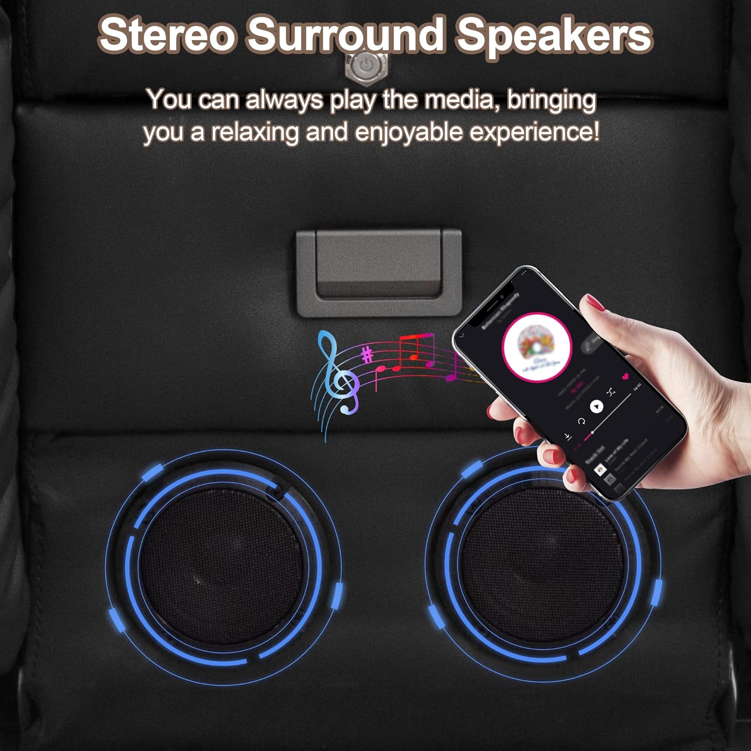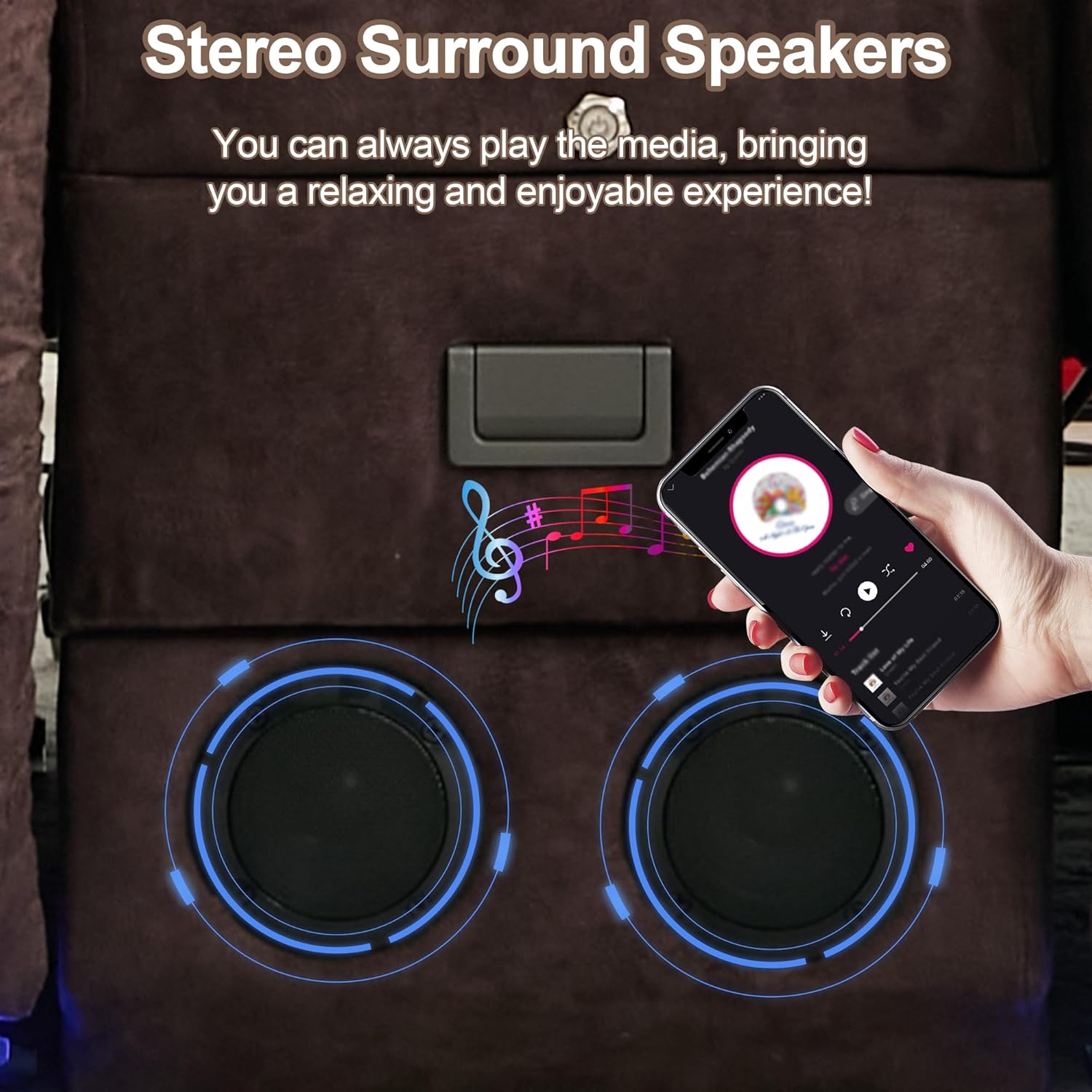 - Smart Storage & Built-in Speakers: The multi-functional center console of this movie loveseat recliner includes a pull-out drawer tray for storing remotes/snacks and dual stereo speakers for immersive audio while you unwind