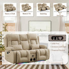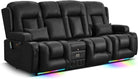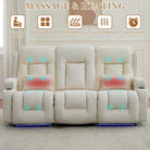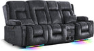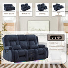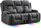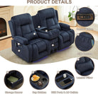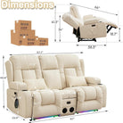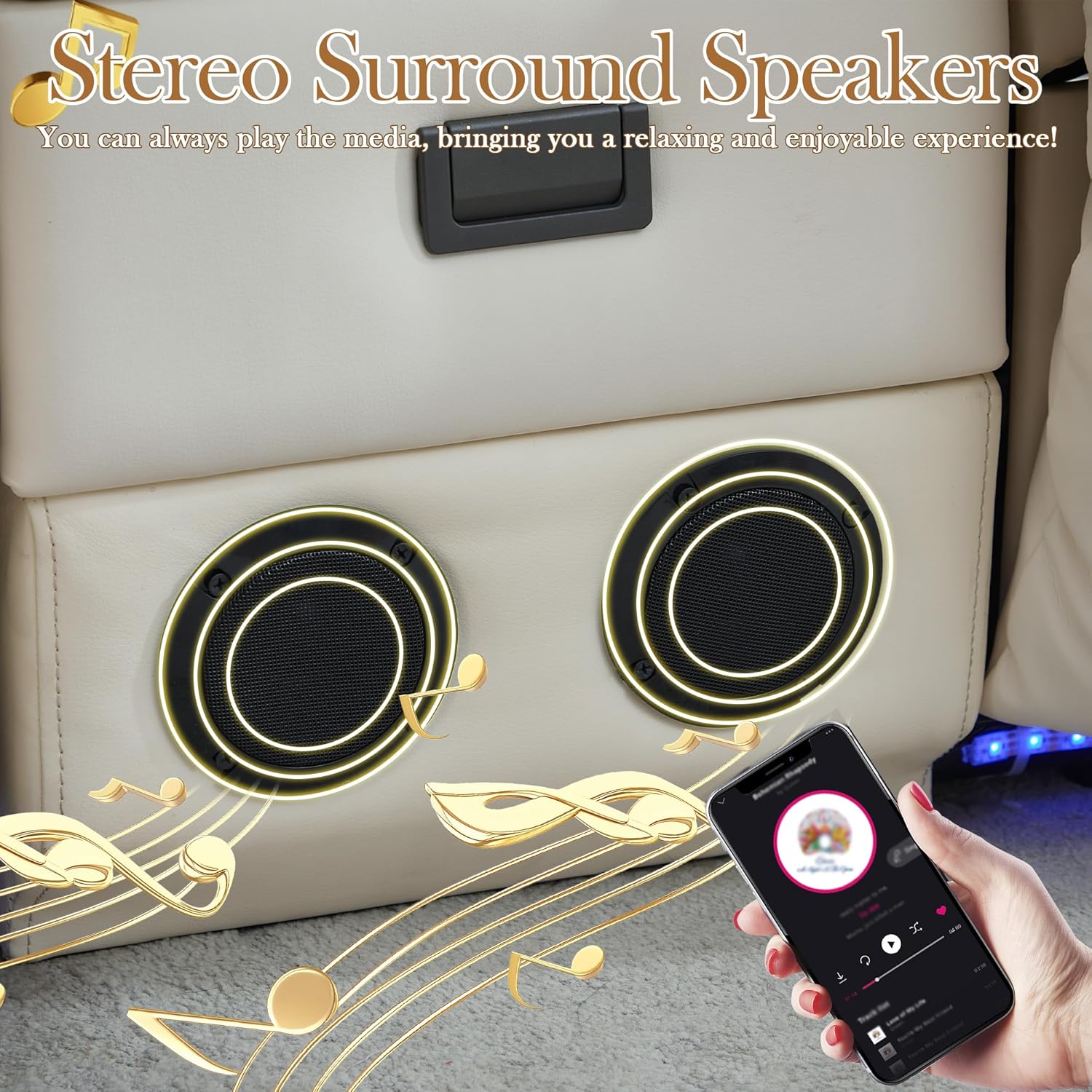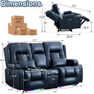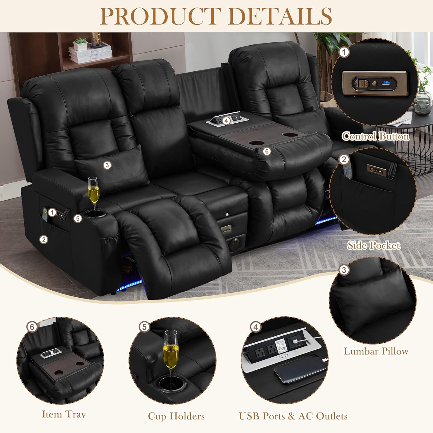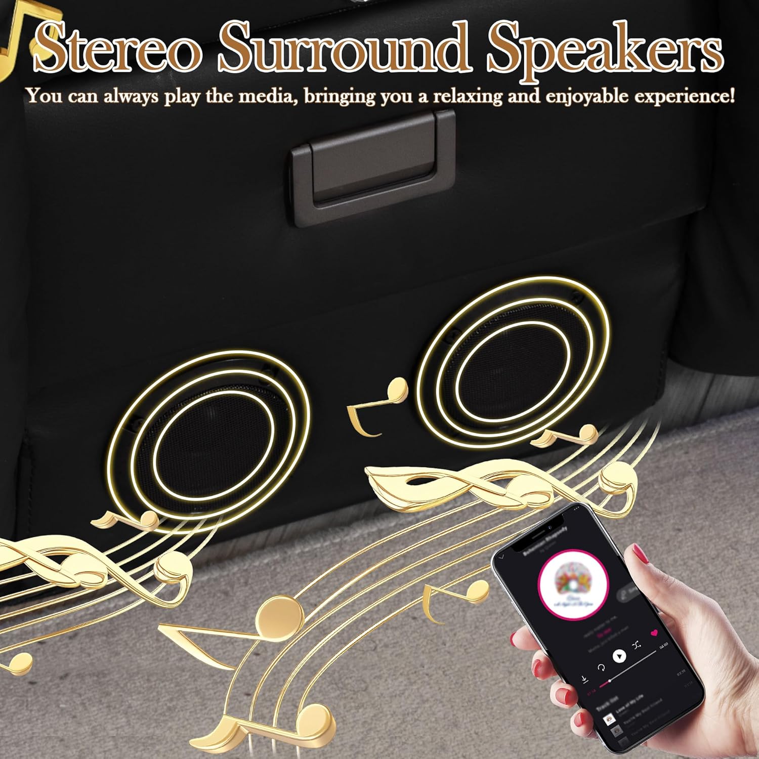 - Smart Storage & Built-in Speakers: The multi-functional center console of this movie loveseat recliner includes a pull-out drawer tray for storing remotes/snacks and dual stereo speakers for immersive audio while you unwind
