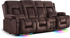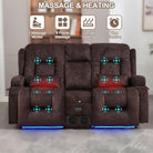 TUNYI Power Loveseat Recliner Sofa with Massage & Heat Home Theater Seating with Console Electric Recliner RV Sofa with USB/Outlet/Storage/Side Pocket/LED Light/Speaker (Brown, Loveseat)