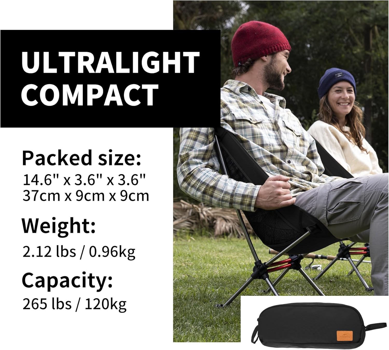 Ultralight Camping Chair 2.12 lbs Portable Backpacking Chair Folding Hiking Chair
