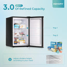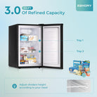 - EUHOMY - QUICK FRESH PRESERVATION - Euhomy’s mini freezer uses 3D refrigeration technology, and rapid cooling technology is good for food fresh and storage. The internal capacity (3.0 cu.ft) and the multilayer structure allow you to have more choices. It can not only provide enough storage space for food/fruit/vegetables/seafood/ice cream, but also prevent odor, allowing you to enjoy clean and odorless food all the time