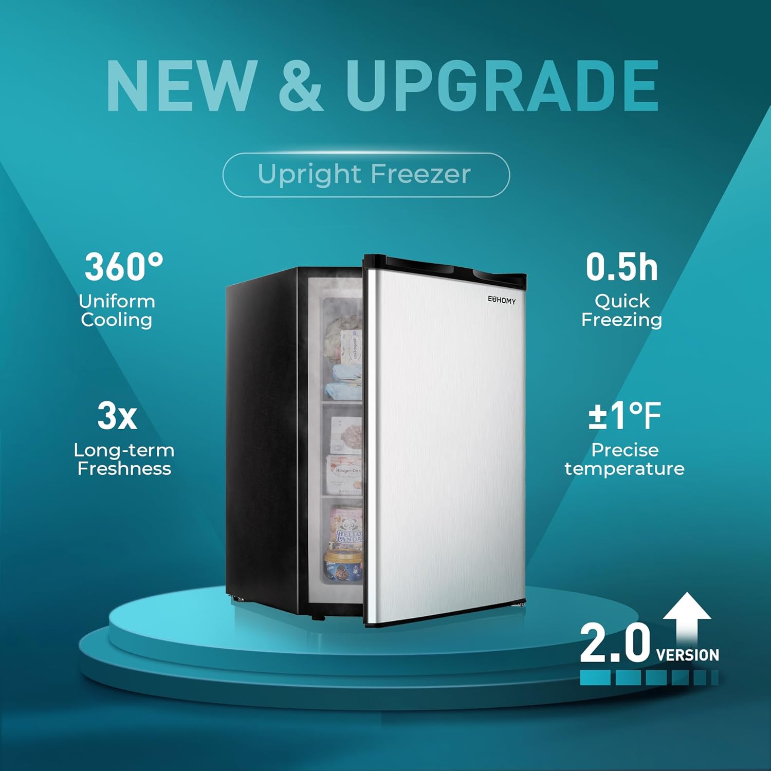 - SUITABLE FOE MULTIPLE SCENARIOS- The original intention of Euhomy's freezer design is to meet the needs of more people. College students can use it in the dorm. Mom and Dad can use it in the kitchen, living room and bedroom at home or in the apartment. It will also be a portable partner for you when you travel. And this partner is very quiet, you will feel very comfortable when you use it. NOTE: You'd better put the small freezer upright for at least 1 day before using it
