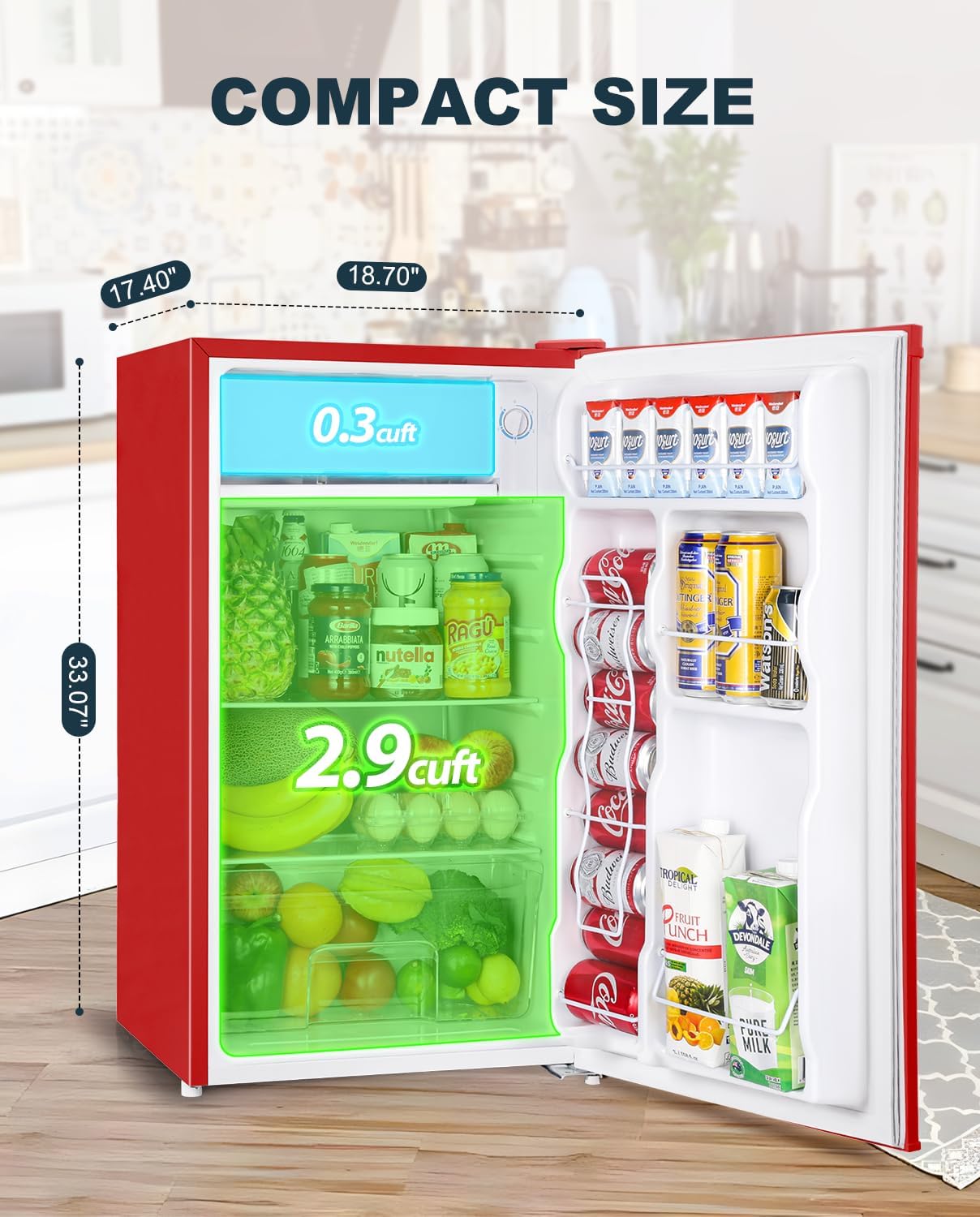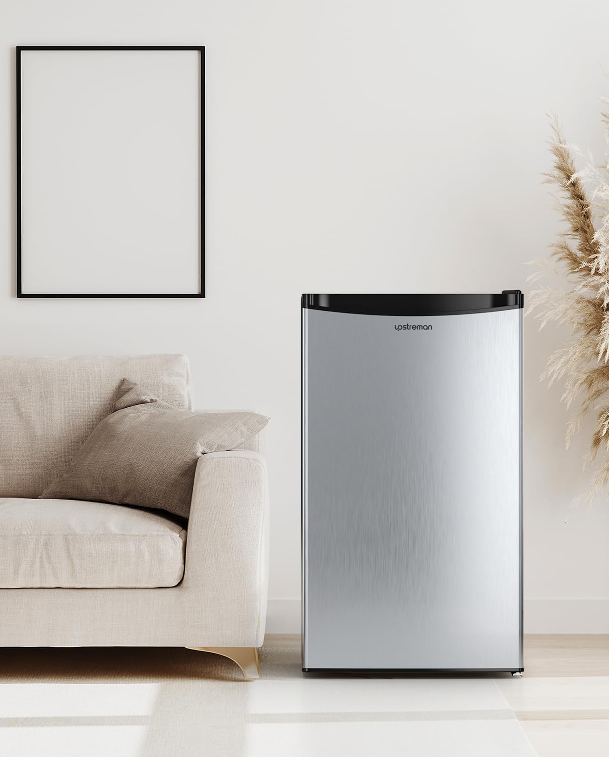 Upstreman 3.2 Cu.Ft Mini Fridge with Freezer, Single Door Mini Fridge, Dorm Fridge, Adjustable Thermostat, Mini Refrigerator for Bedroom, Office, Dorm, Black-BR321