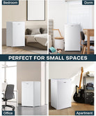 It consists of a 2.9 Cu.ft cooler and a 0.3 Cu.ft freezer, provides capacious storage for personal use. keep your chilled drinks at an easy reach.
