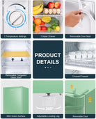 The small refrigerator crisper drawer helps to maintain the ideal humidity level for your greens and fruits, keep them fresh and juicy.