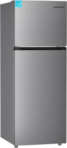 Upstreman 7.7 Cu.Ft. Refrigerator with Freezer, Double Door, Adjustable Thermostat, Large Capacity, Reversible Door Swing, Refrigerator for Apartment, Office, Dorm, Stainless (BD75)
