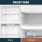The refrigerator has a larger and deeper freezer compartment. The freezer has a volume of 1.5 cu.ft. and can hold more food for everyday use.