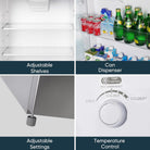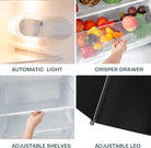The small refrigerator is equipped with convenient LED lights, which turn on and off automatically when you open and close the small fridge door