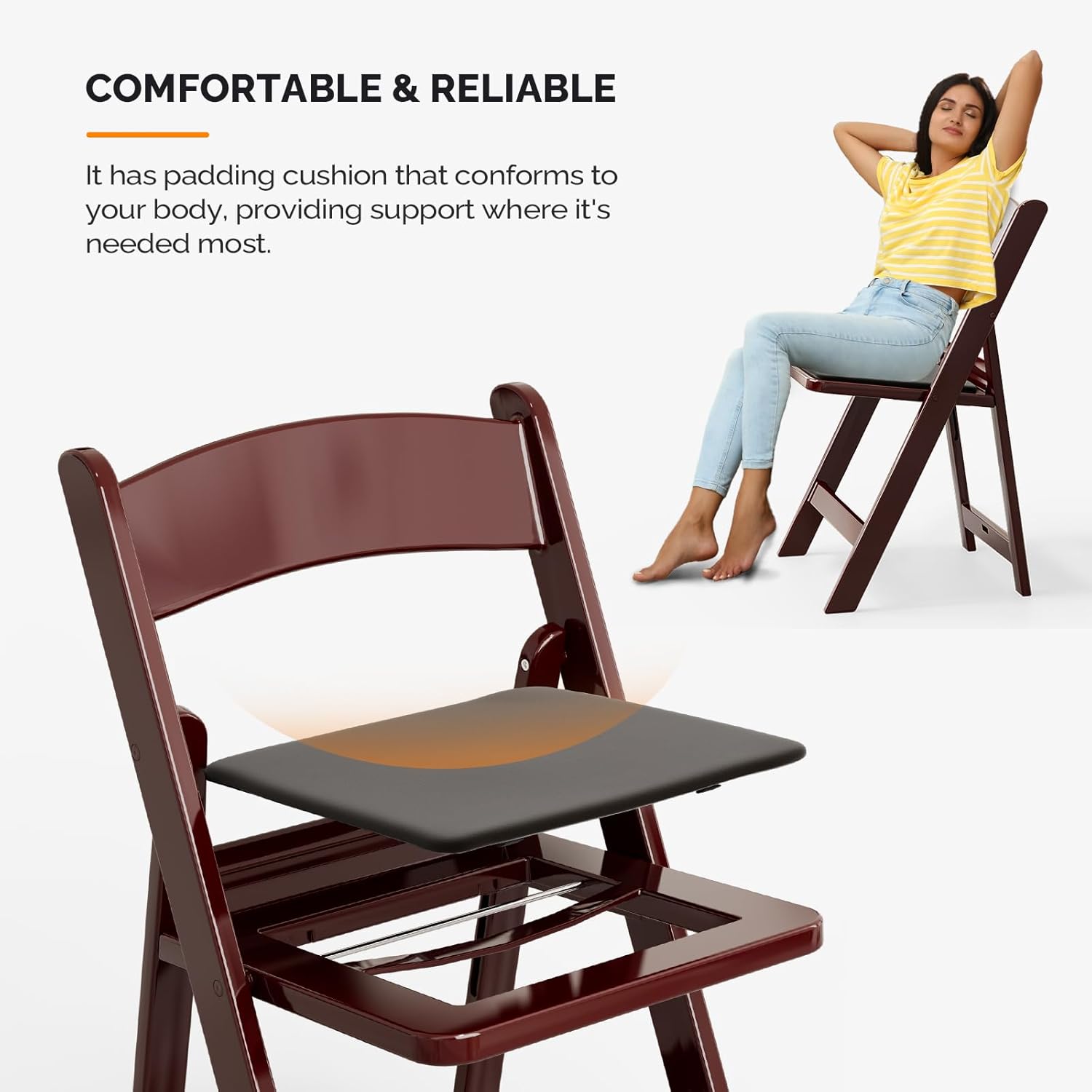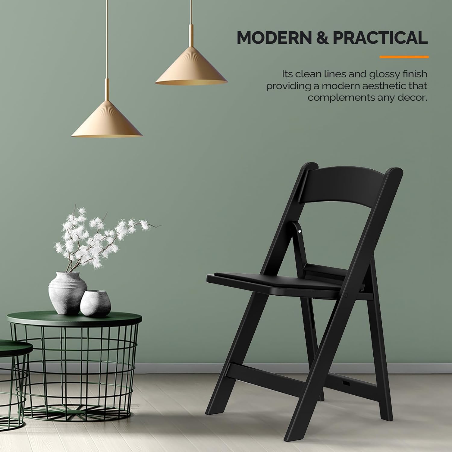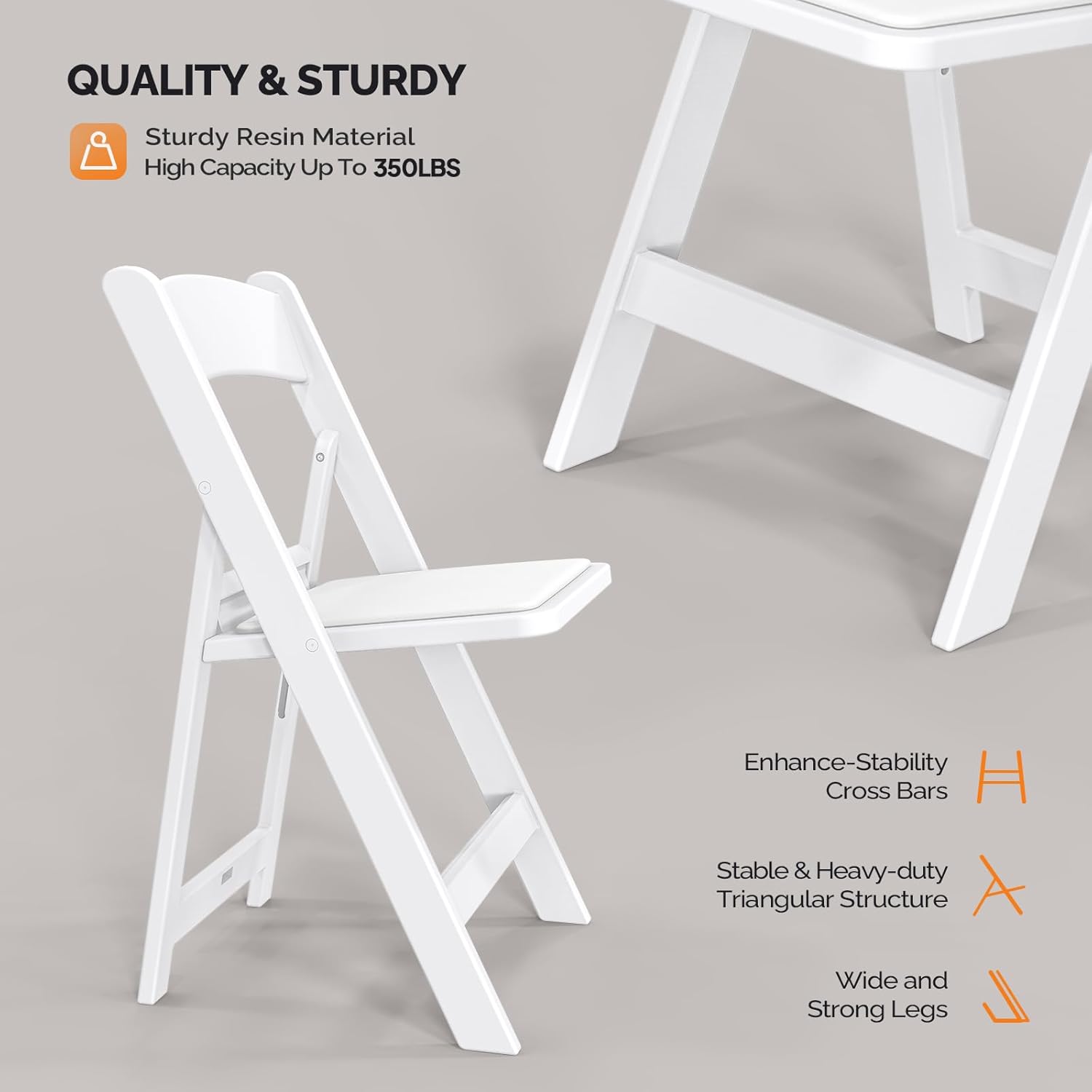 VINGLI Resin Folding Chair with Cushion Foldable Plastic Chair with Comfortable Cushioned Seat
