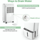 Auto Drain: The dehumidifier has drain hose outlet where you can just simply attached the 6.56 ft hose use for continuously draining.