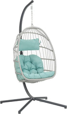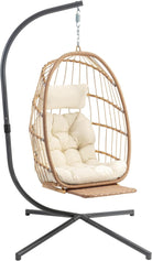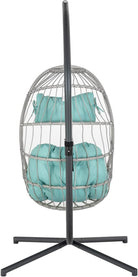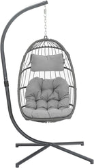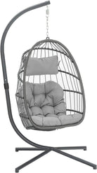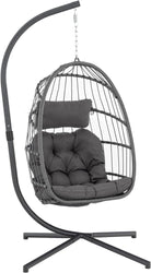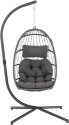Yechen Indoor Outdoor Egg Hanging Chair with Stand, Patio Wicker Swing Egg Chair Indoor Swinging Chair Outdoor Hammock Egg Chair 350lbs Capacity for Patio Bedroom Balcony, Charcoal Grey (EG-001)