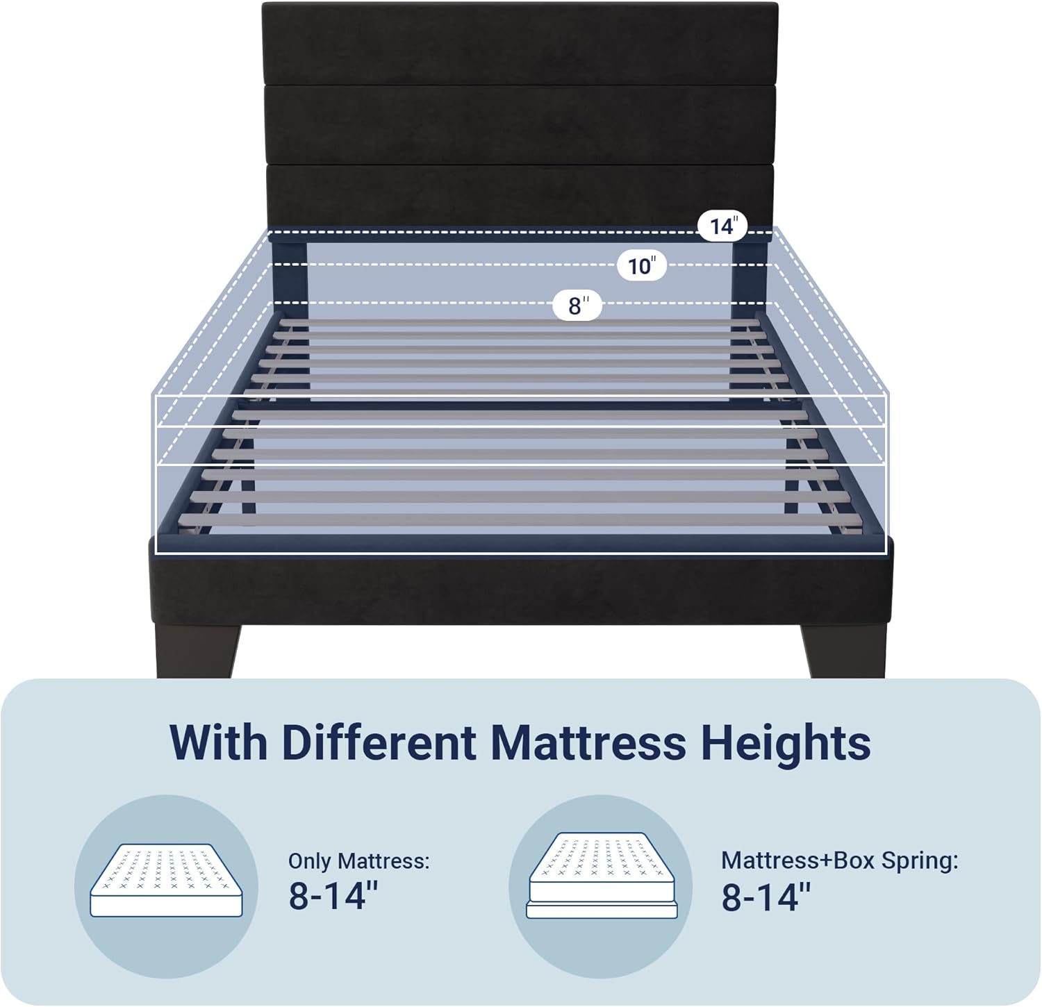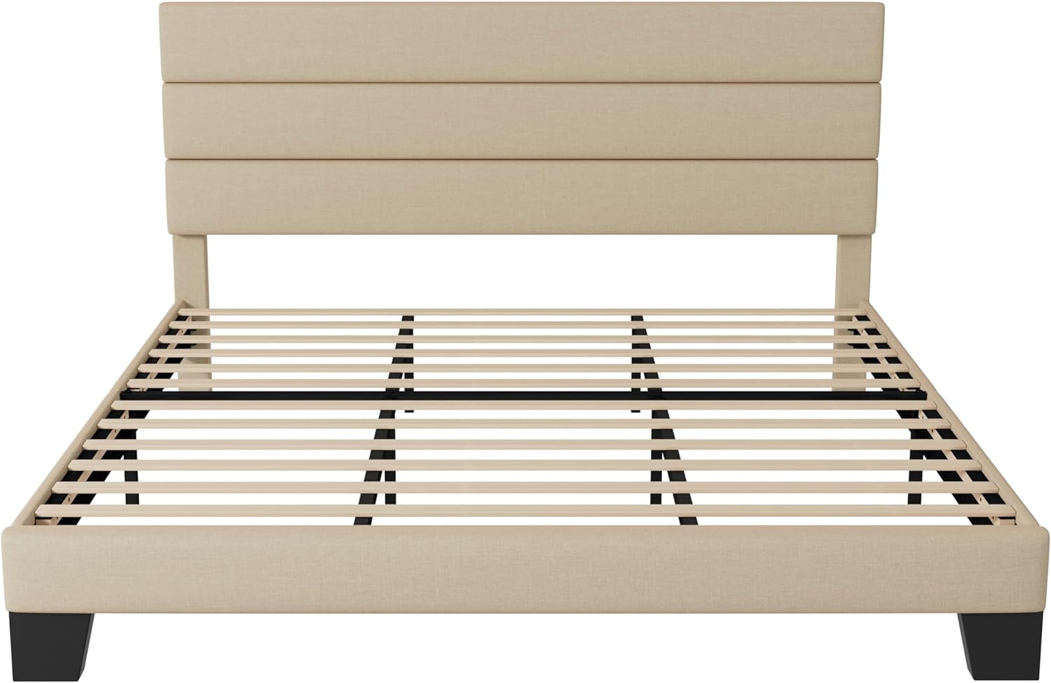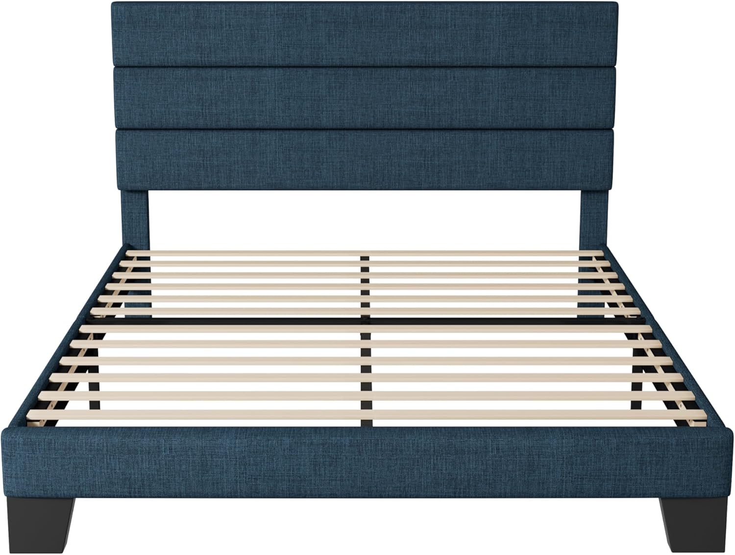 Allewie King size platform bed frame with velvet upholstered headboard and planks