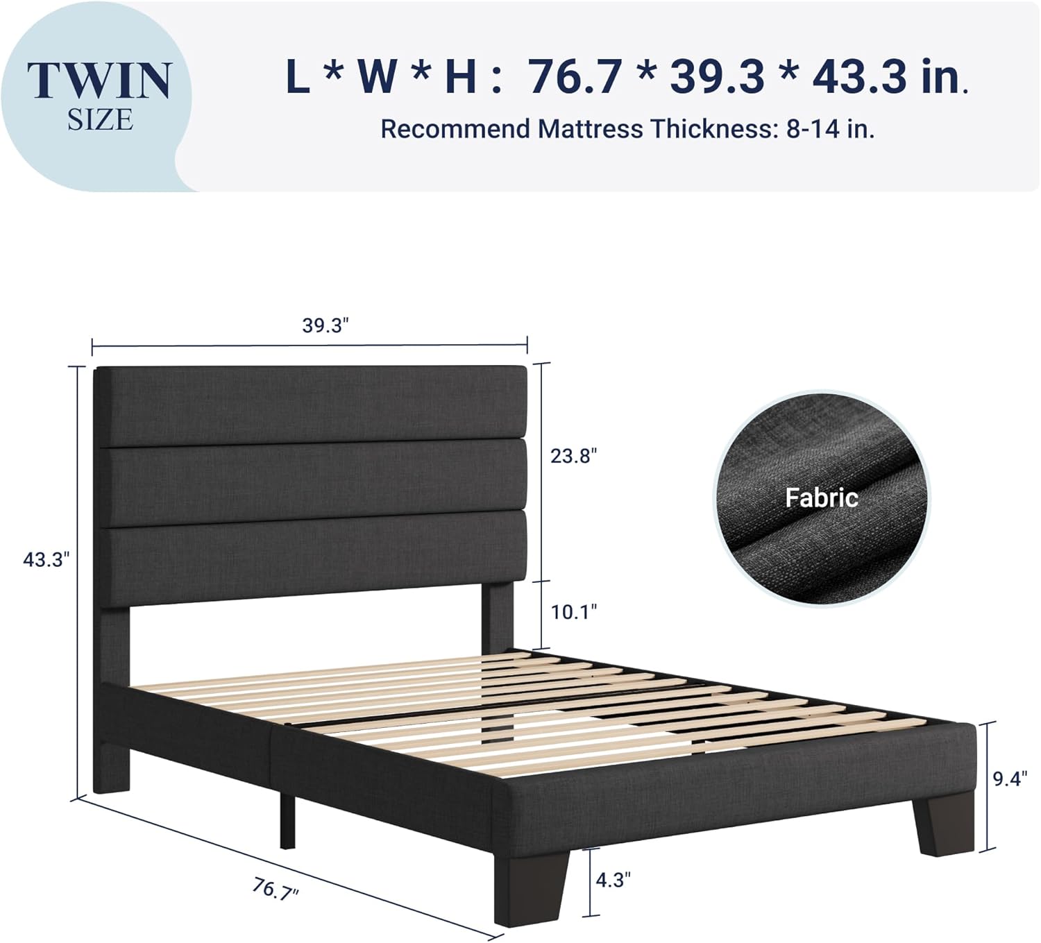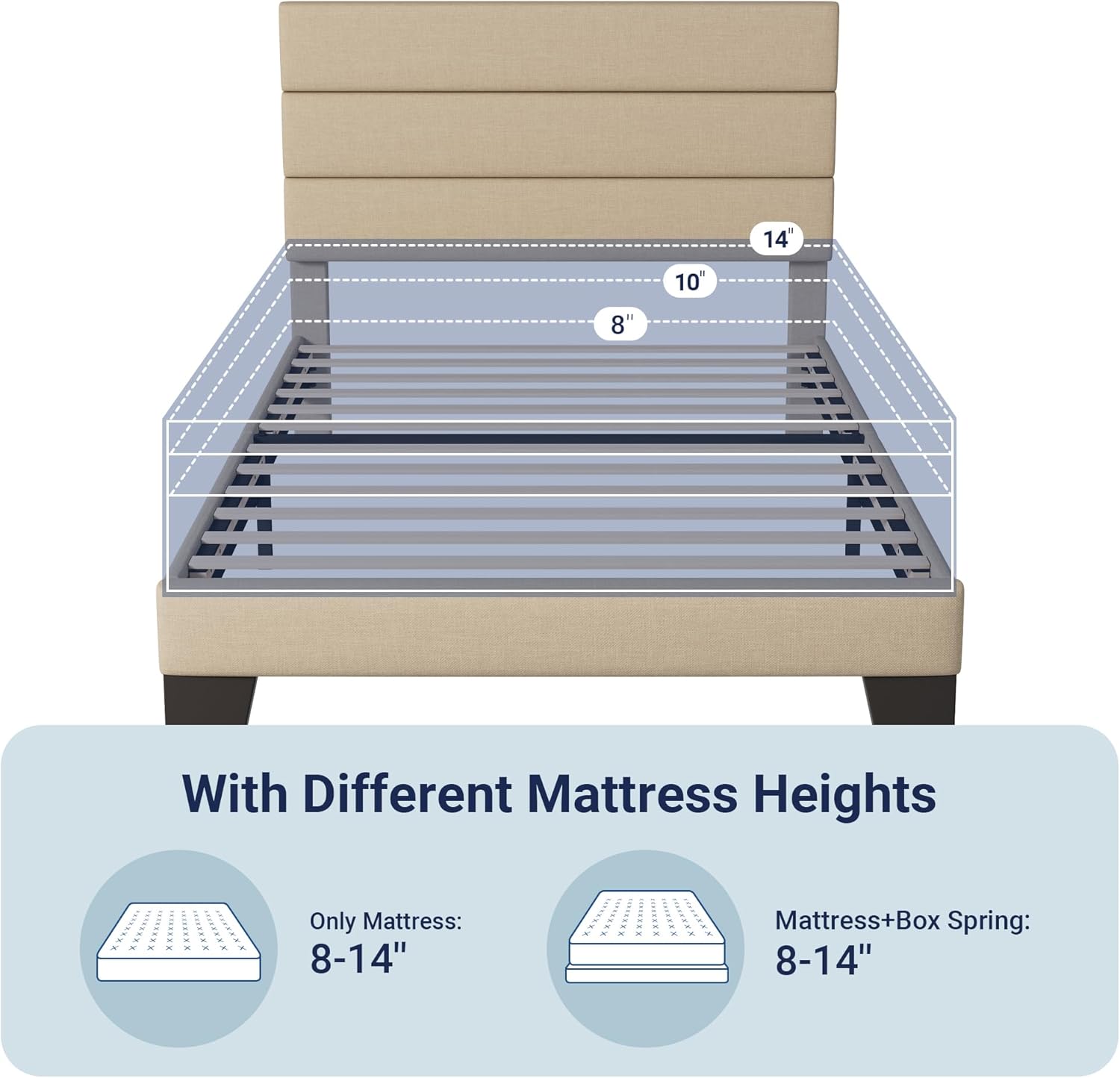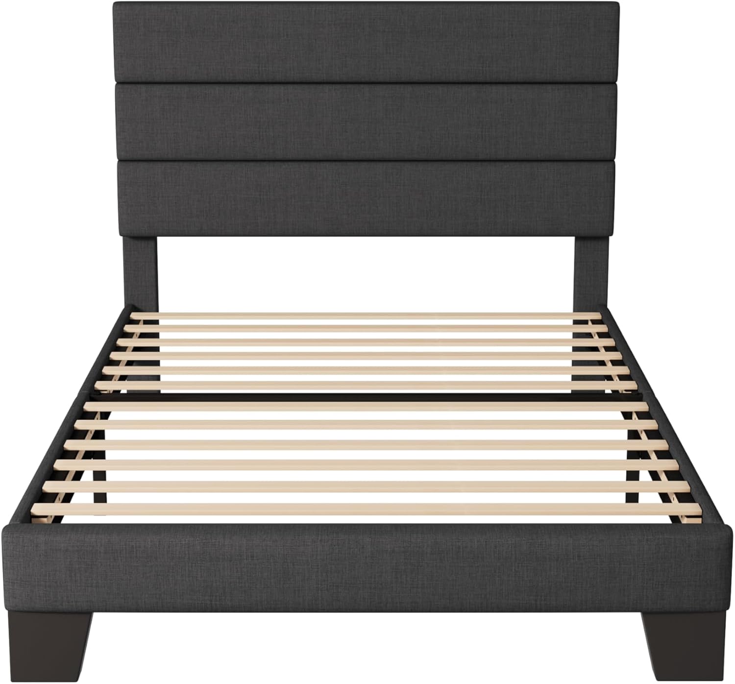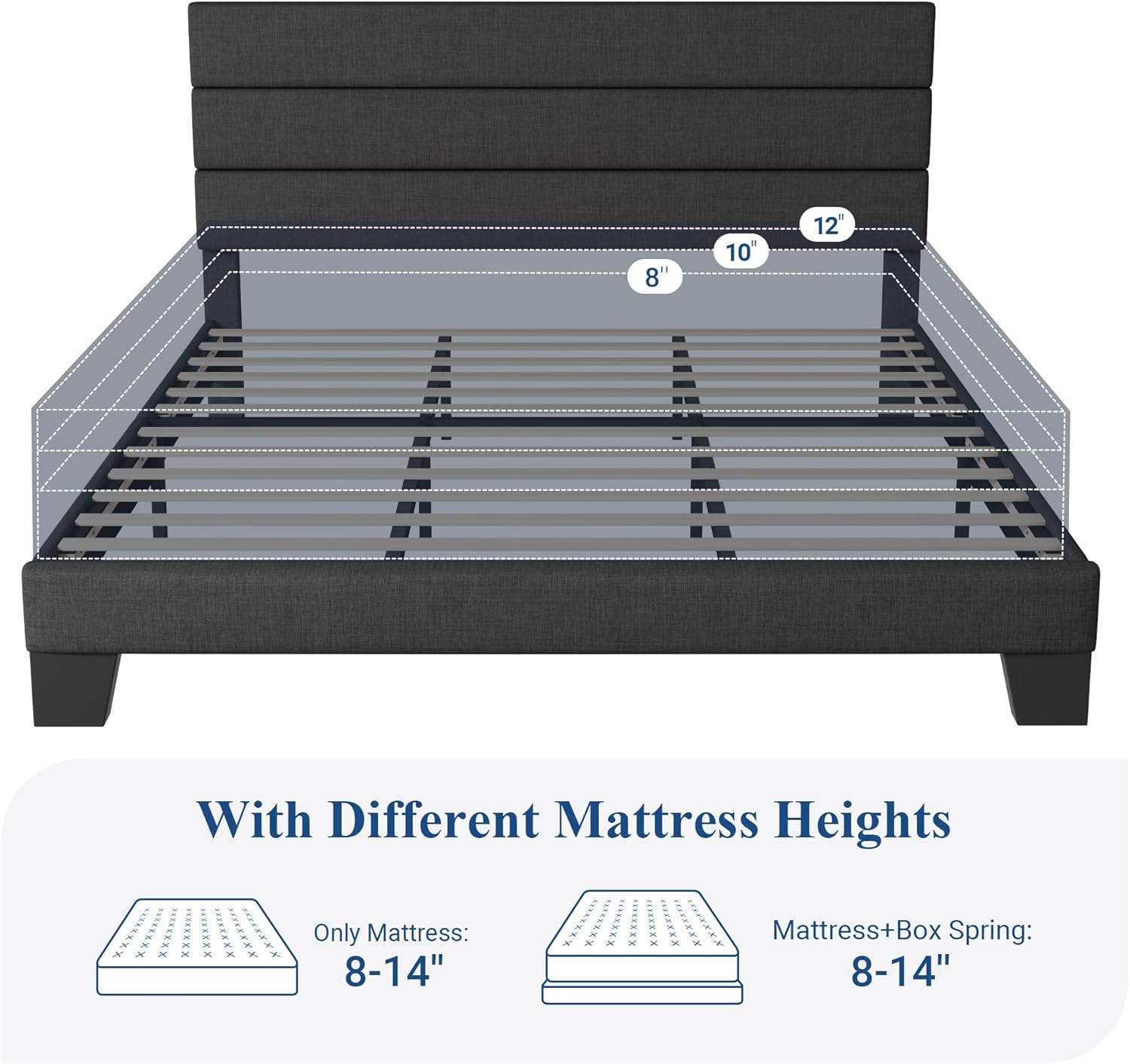 Allewie King size platform bed frame with velvet upholstered headboard and planks