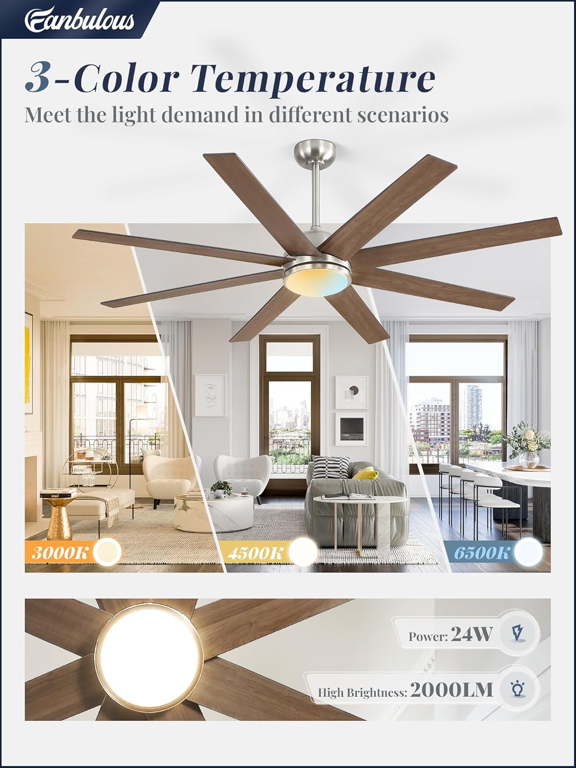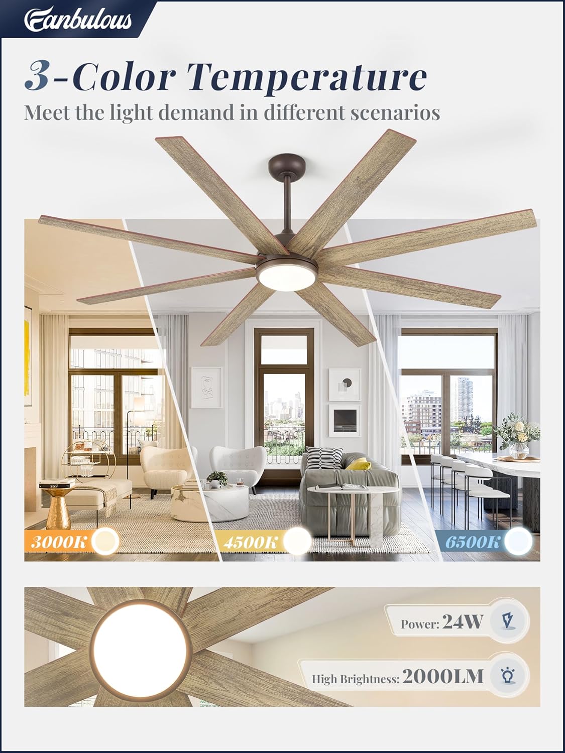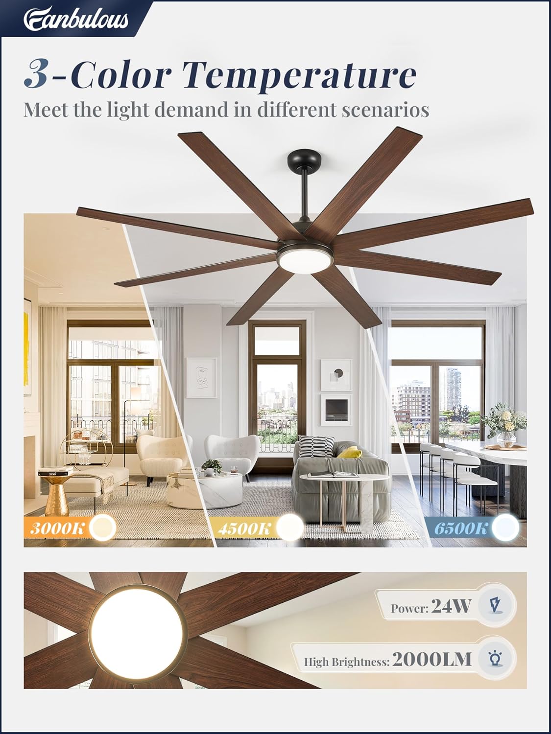 Zmishibo 72-inch large ceiling fan with lighting and remote indoor/outdoor