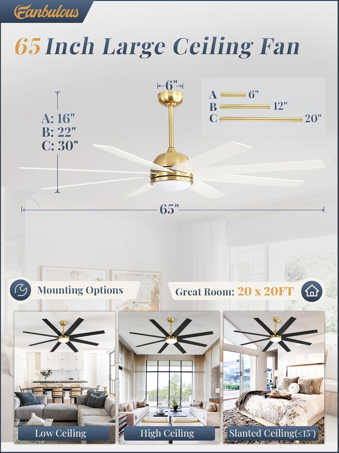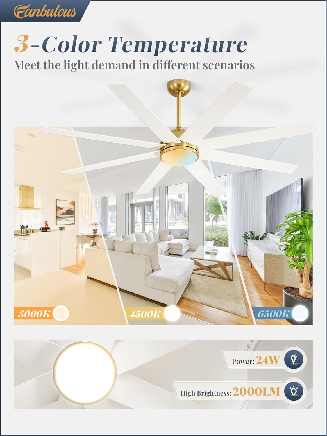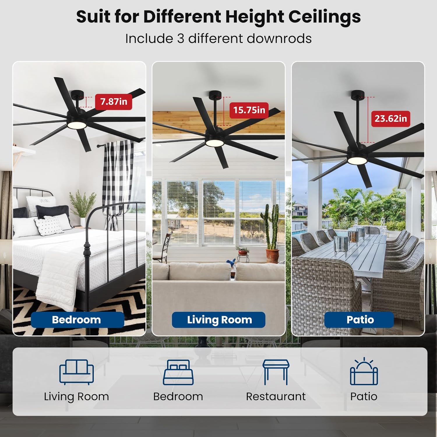 Zmishibo 72-inch large ceiling fan with lighting and remote indoor/outdoor