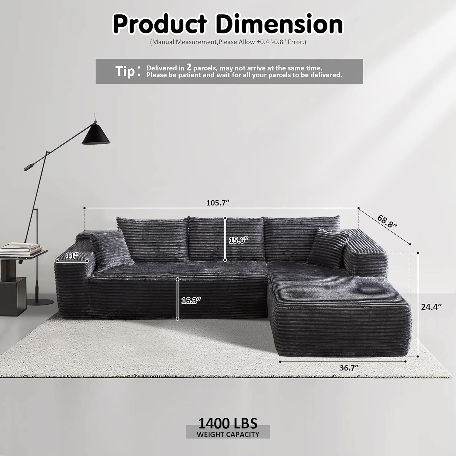 Ovios 104" Cloud Section Sofa L-shaped lounge chair, modern modular sofa