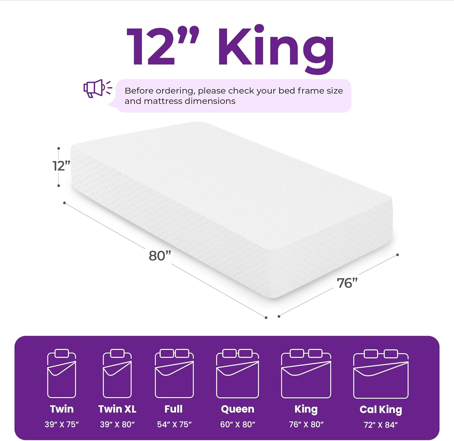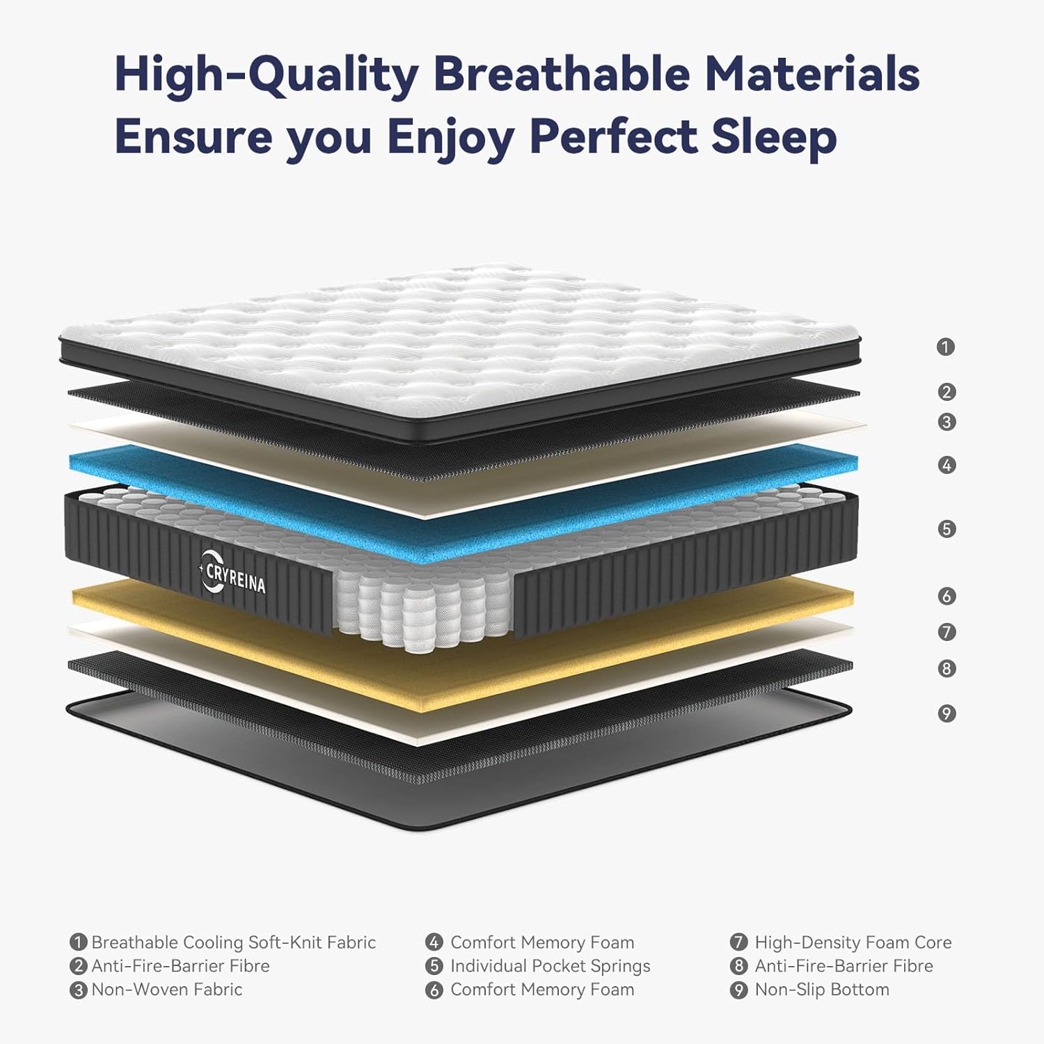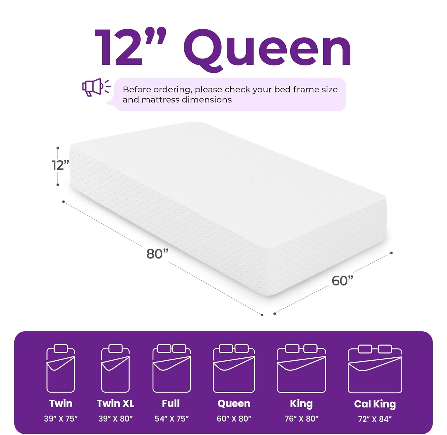 12-inch queen-size mattress, medium-firm memory foam hybrid mattress with pocket springs