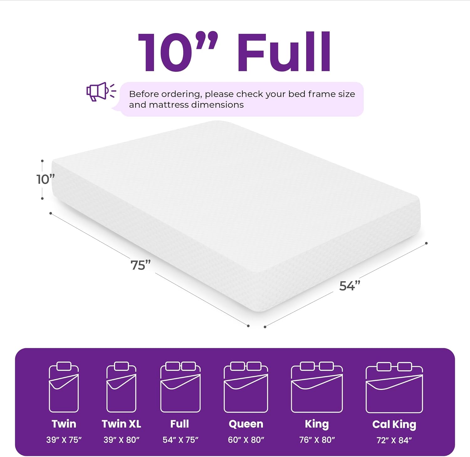 Full Size Mattress, 10 Inch Full Size Mattress in a Box, Medium Plush Hybrid Mattress