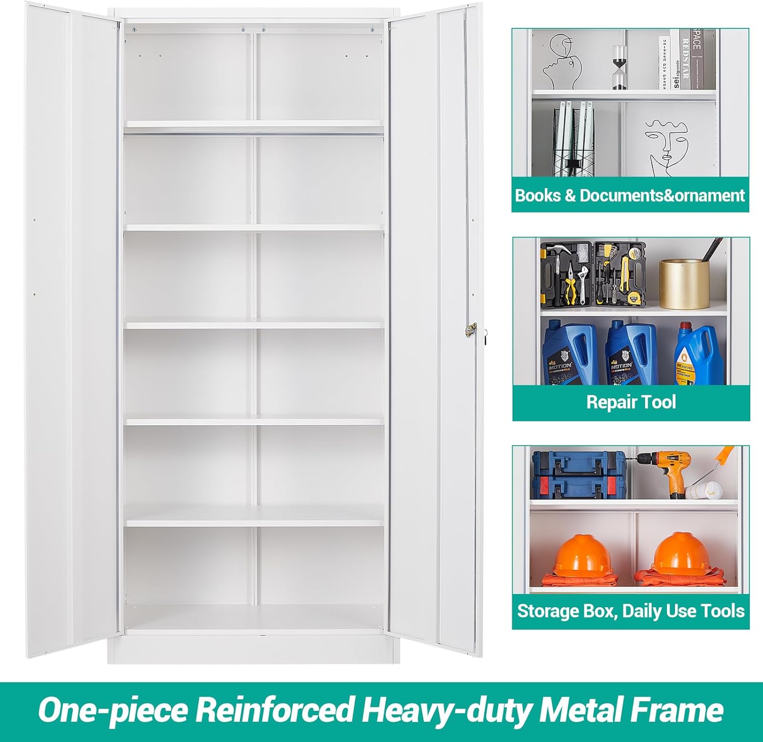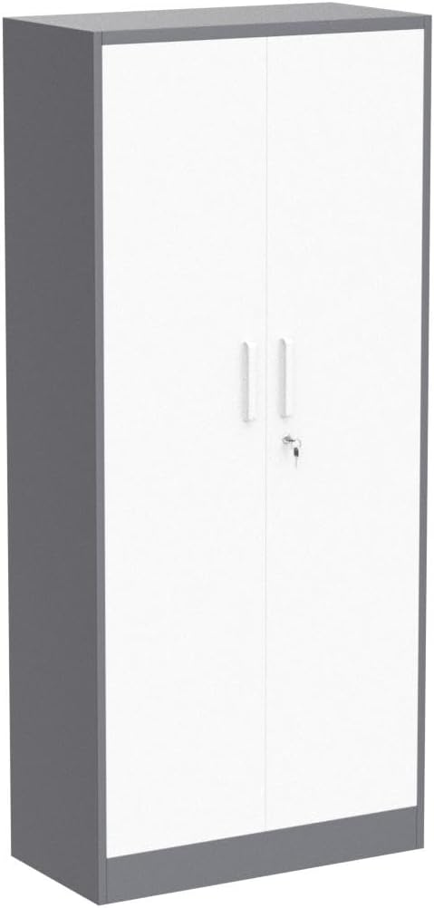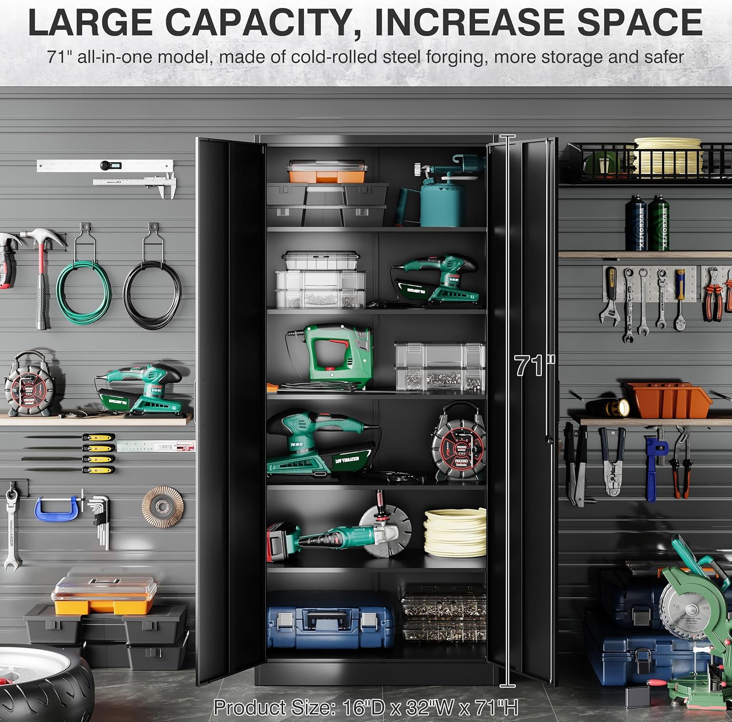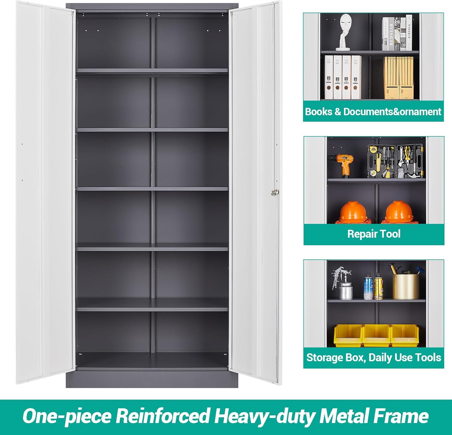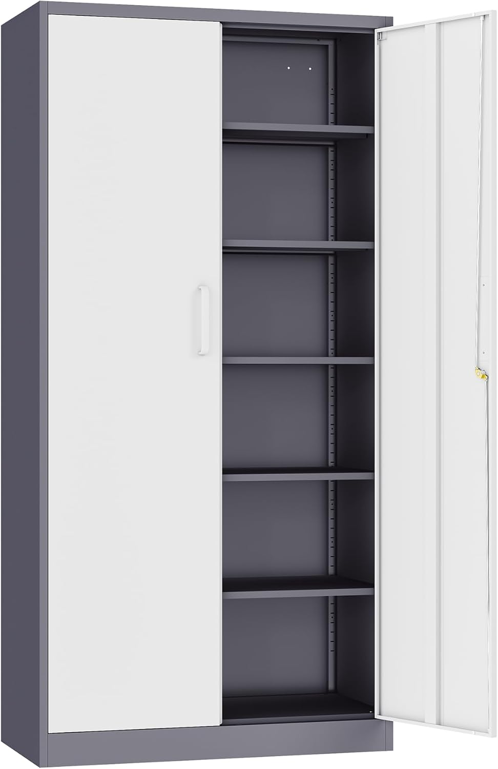 Metal Storage Cabinet with 2 Doors and 6 Shelves, Black Metal Cabinet with Lock, 71 Inch Lockable Garage Storage Cabinet