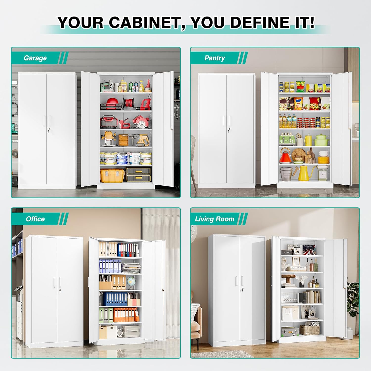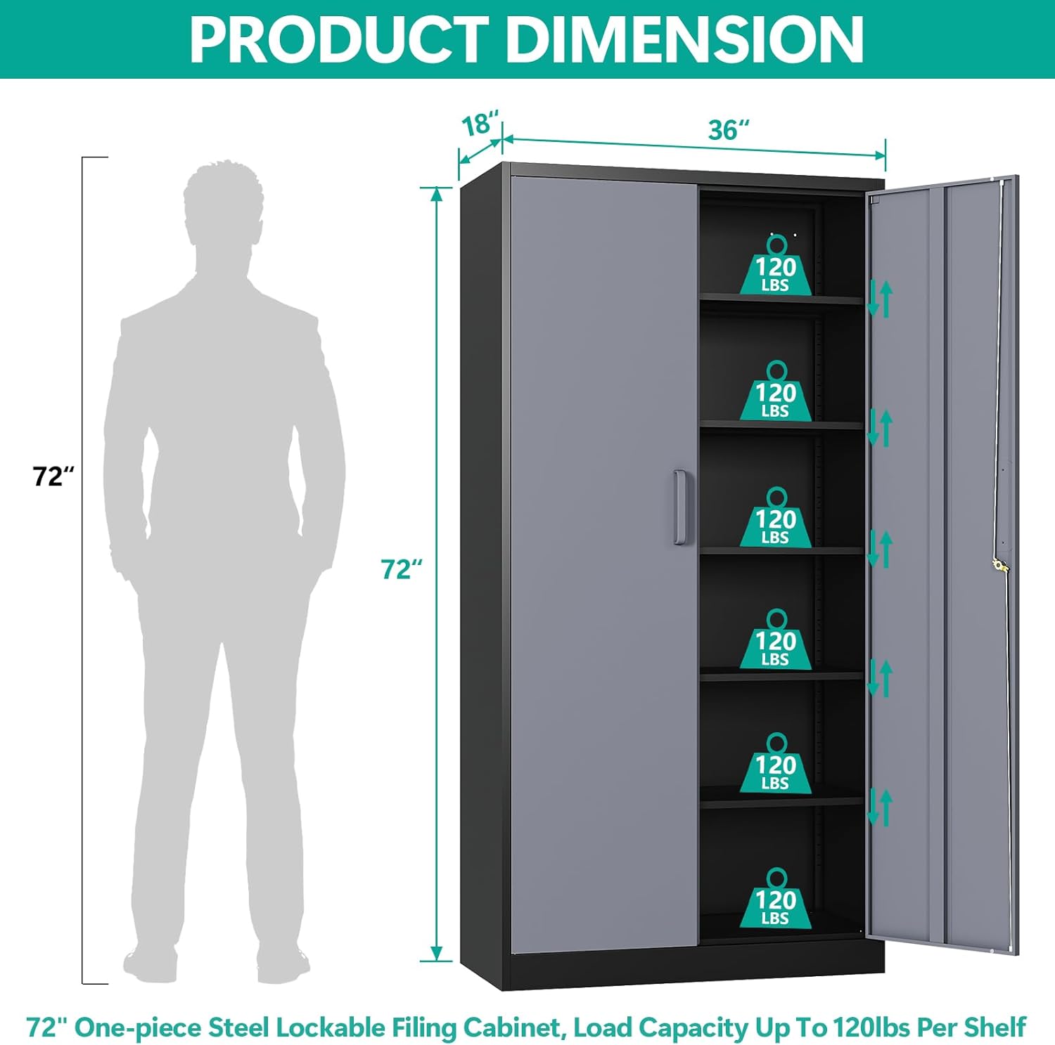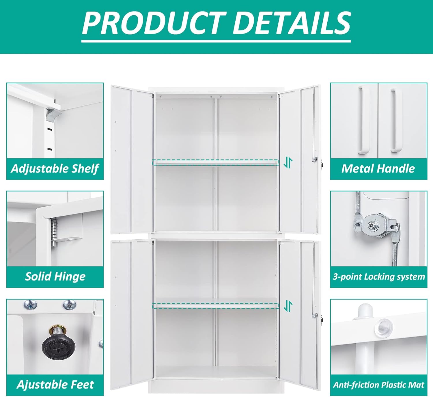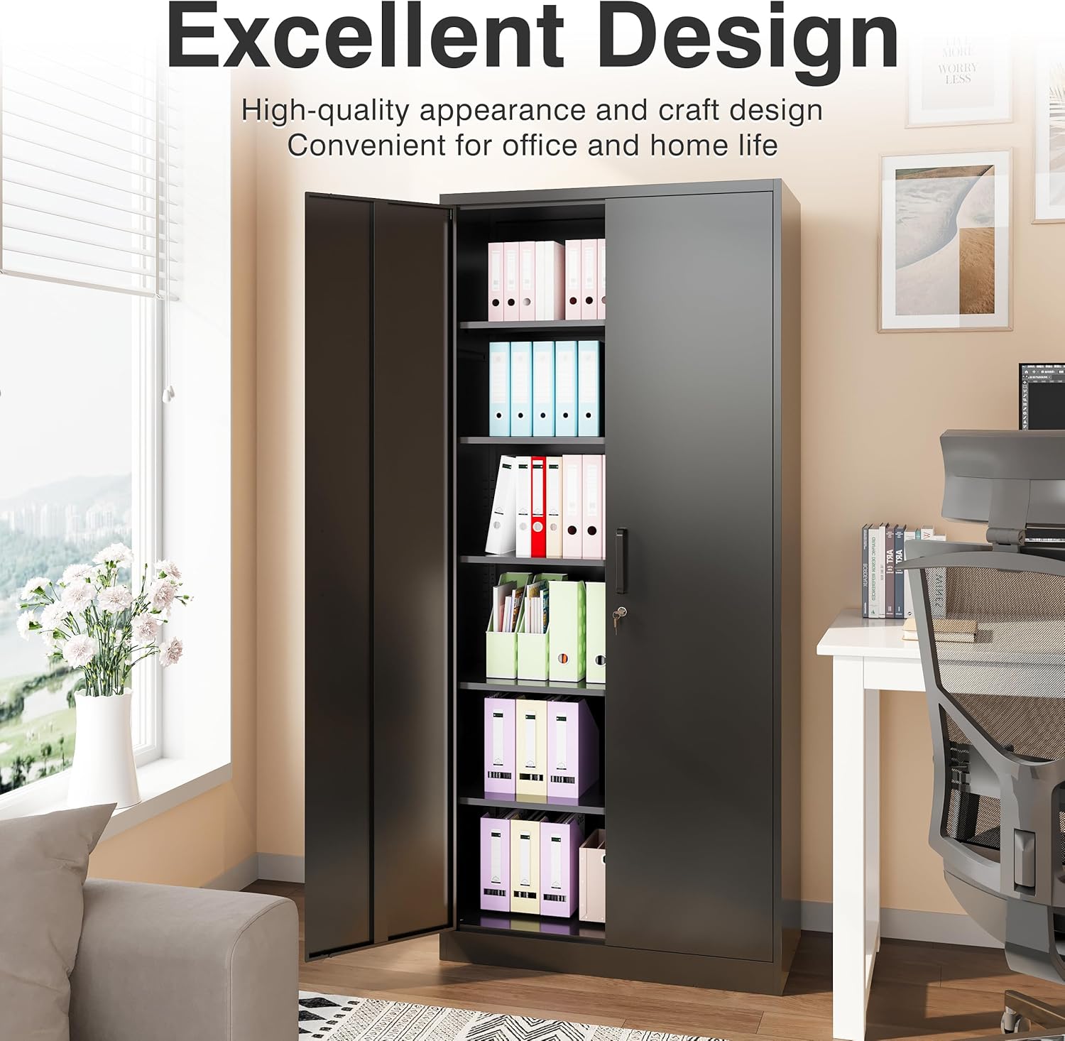Metal Storage Cabinet with 2 Doors and 6 Shelves, Black Metal Cabinet with Lock, 71 Inch Lockable Garage Storage Cabinet