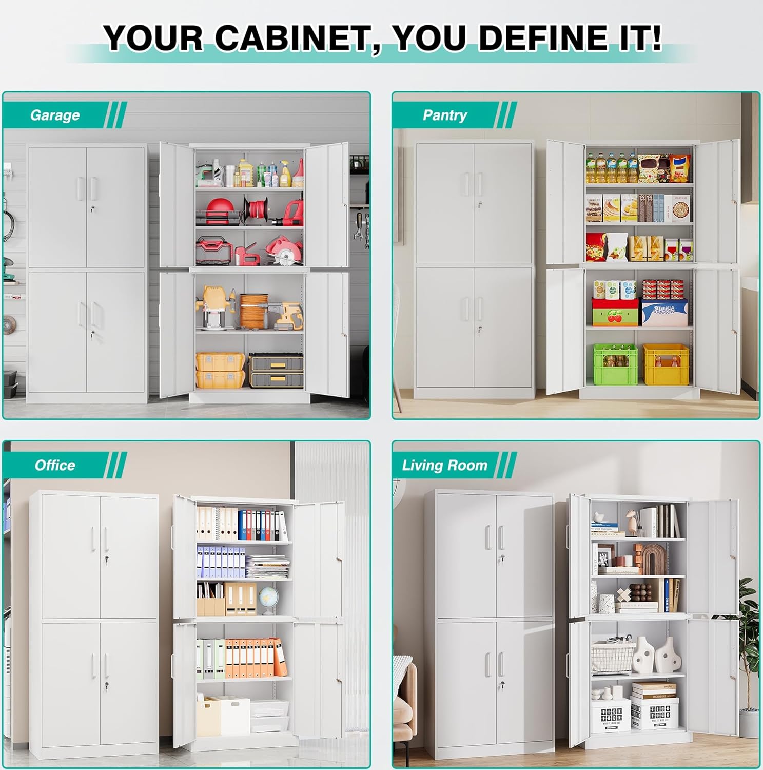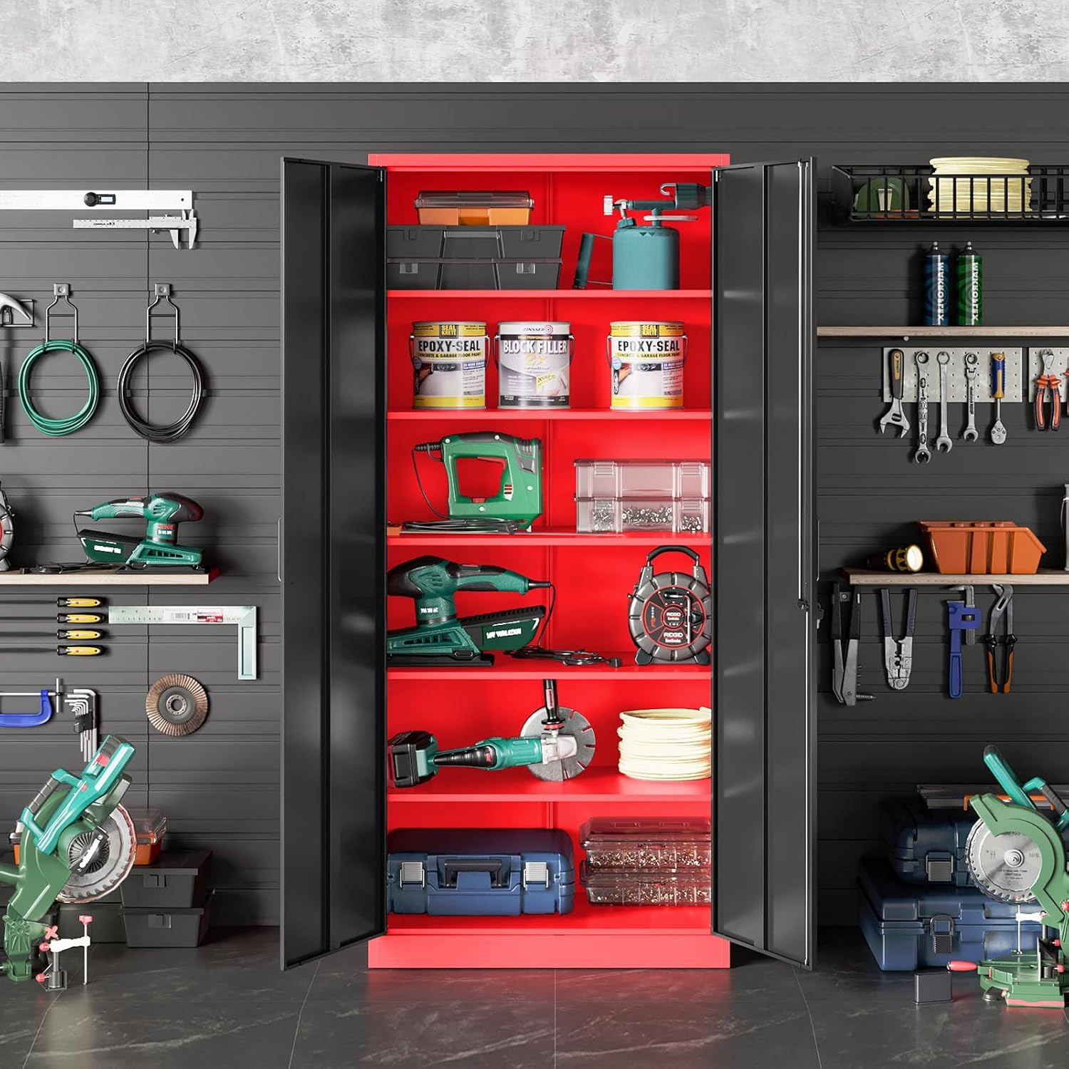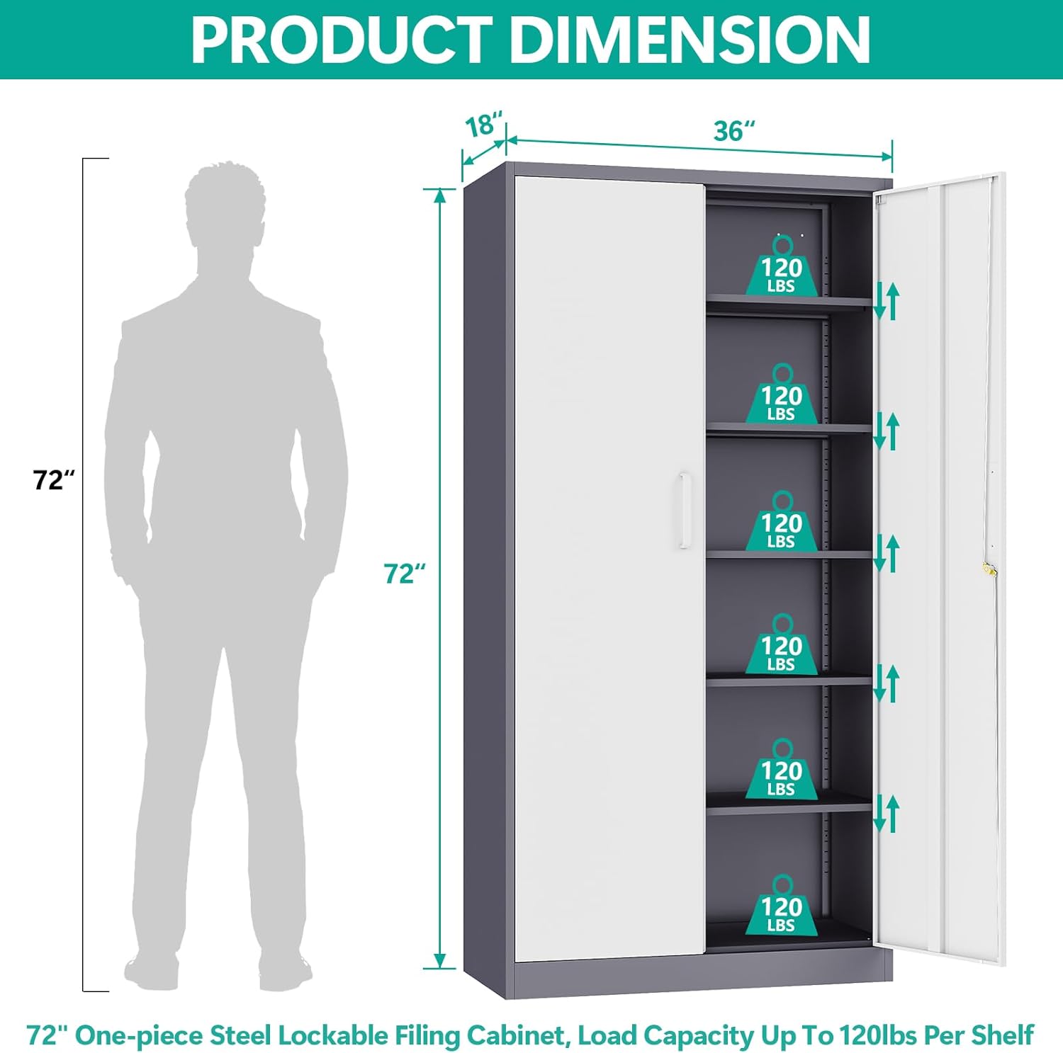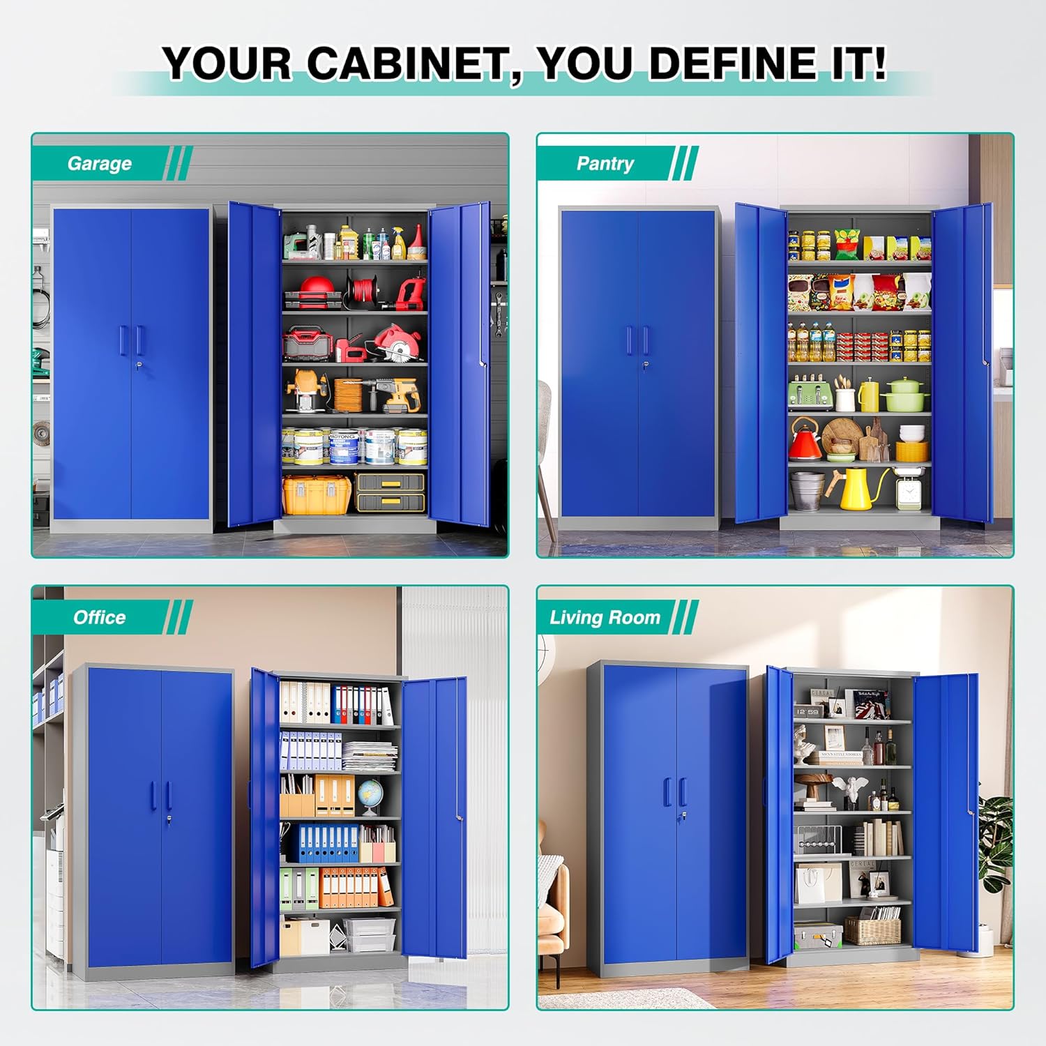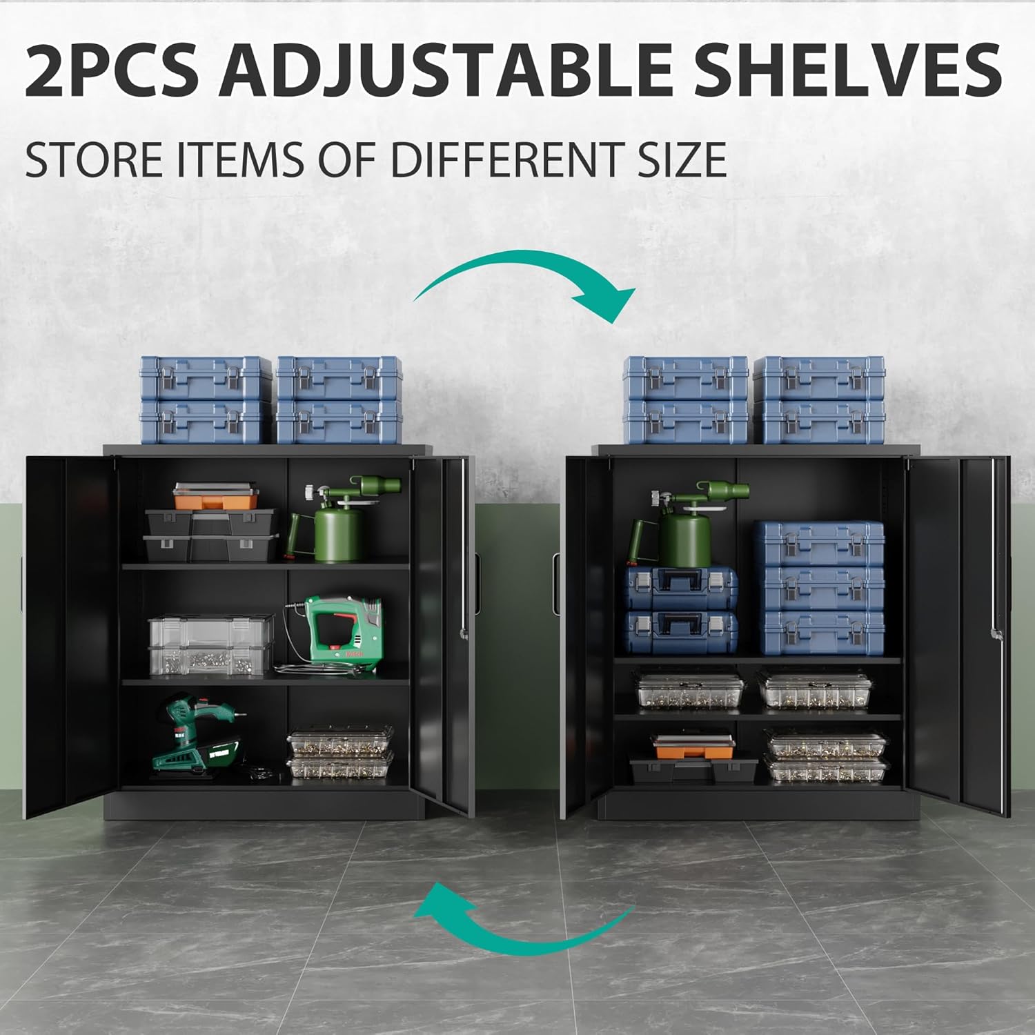 Metal Storage Cabinet with 2 Doors and 6 Shelves, Black Metal Cabinet with Lock, 71 Inch Lockable Garage Storage Cabinet