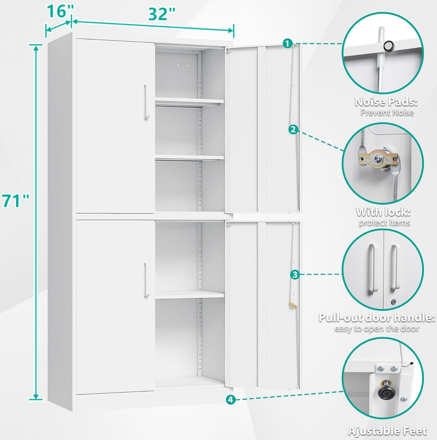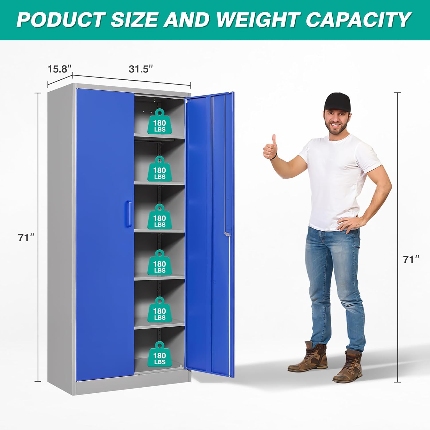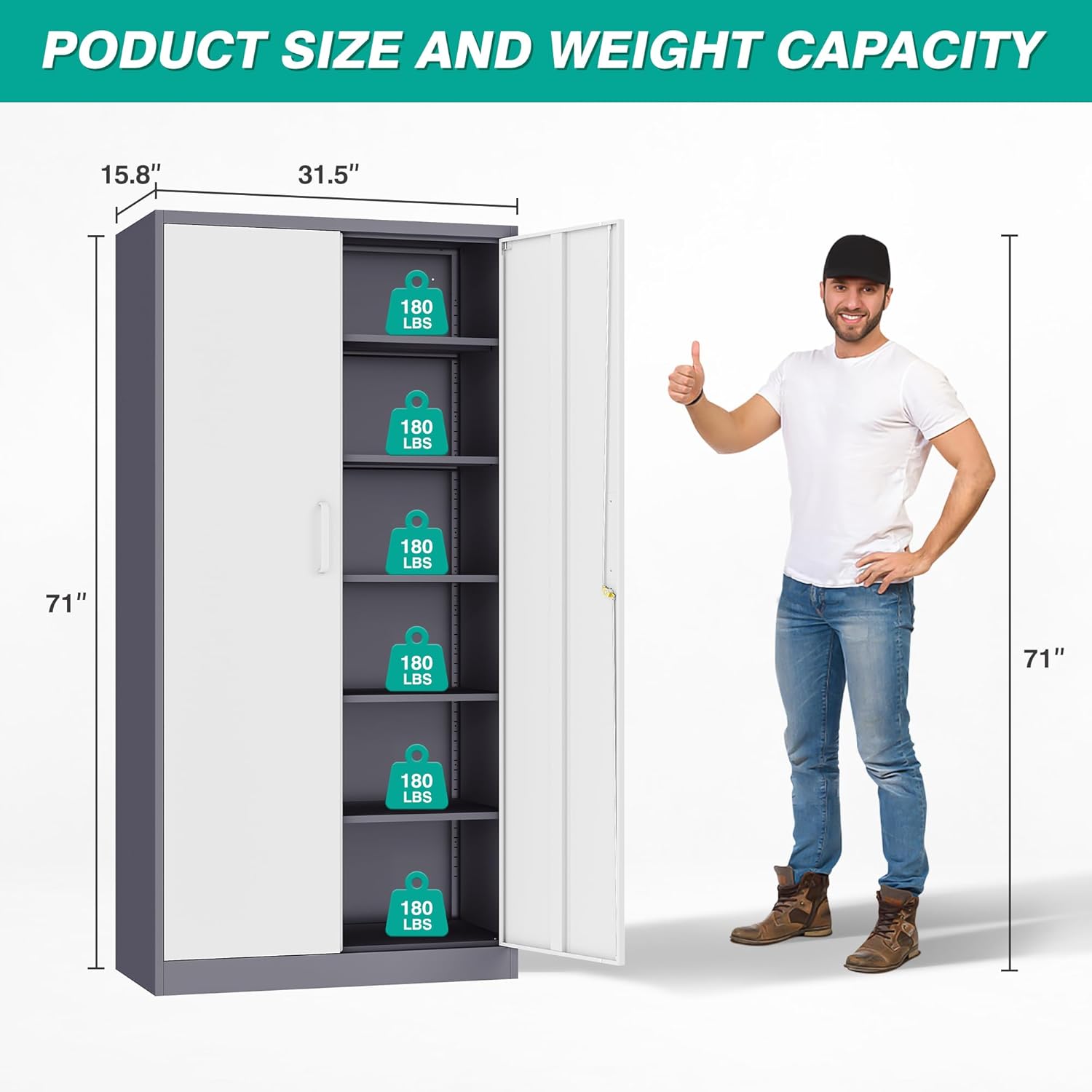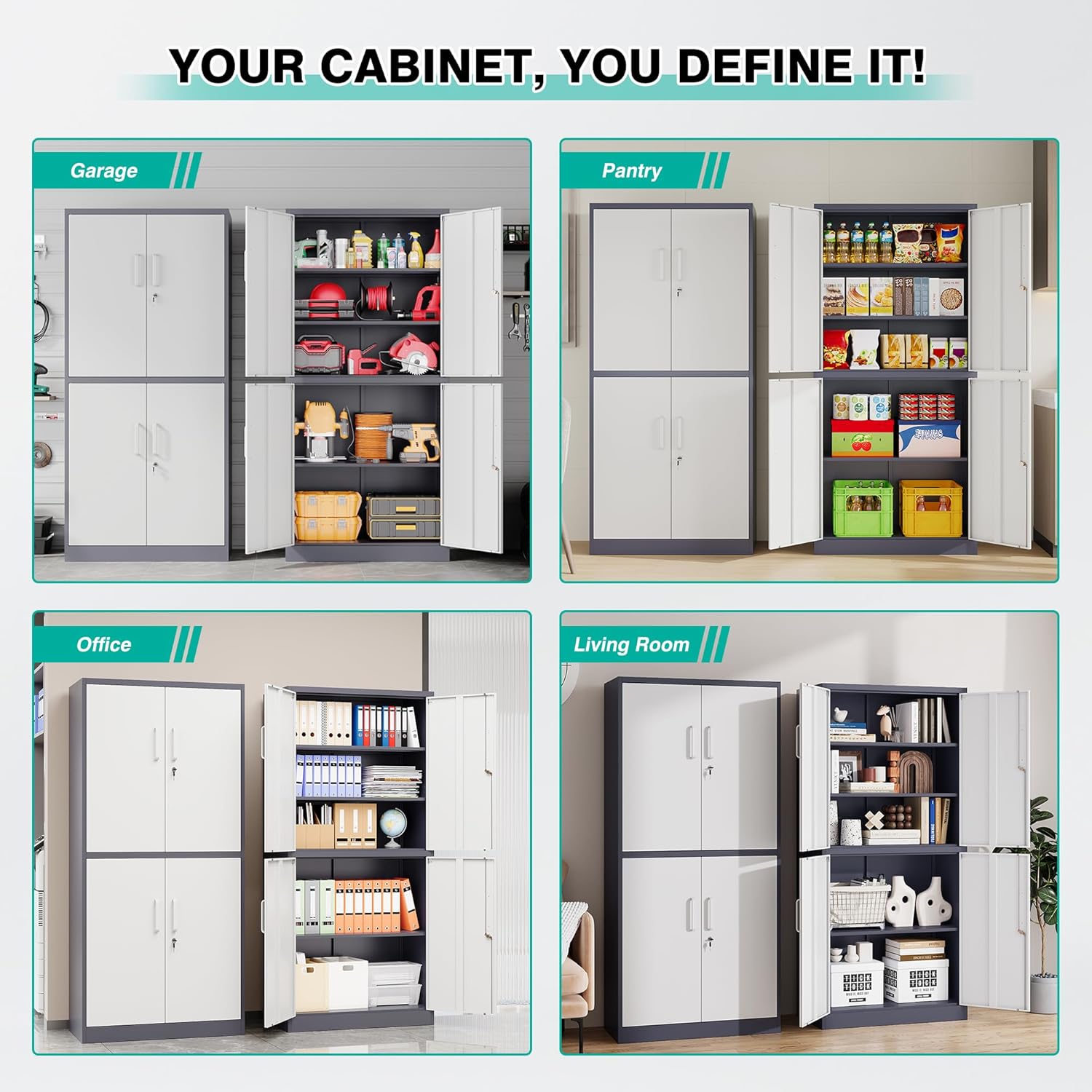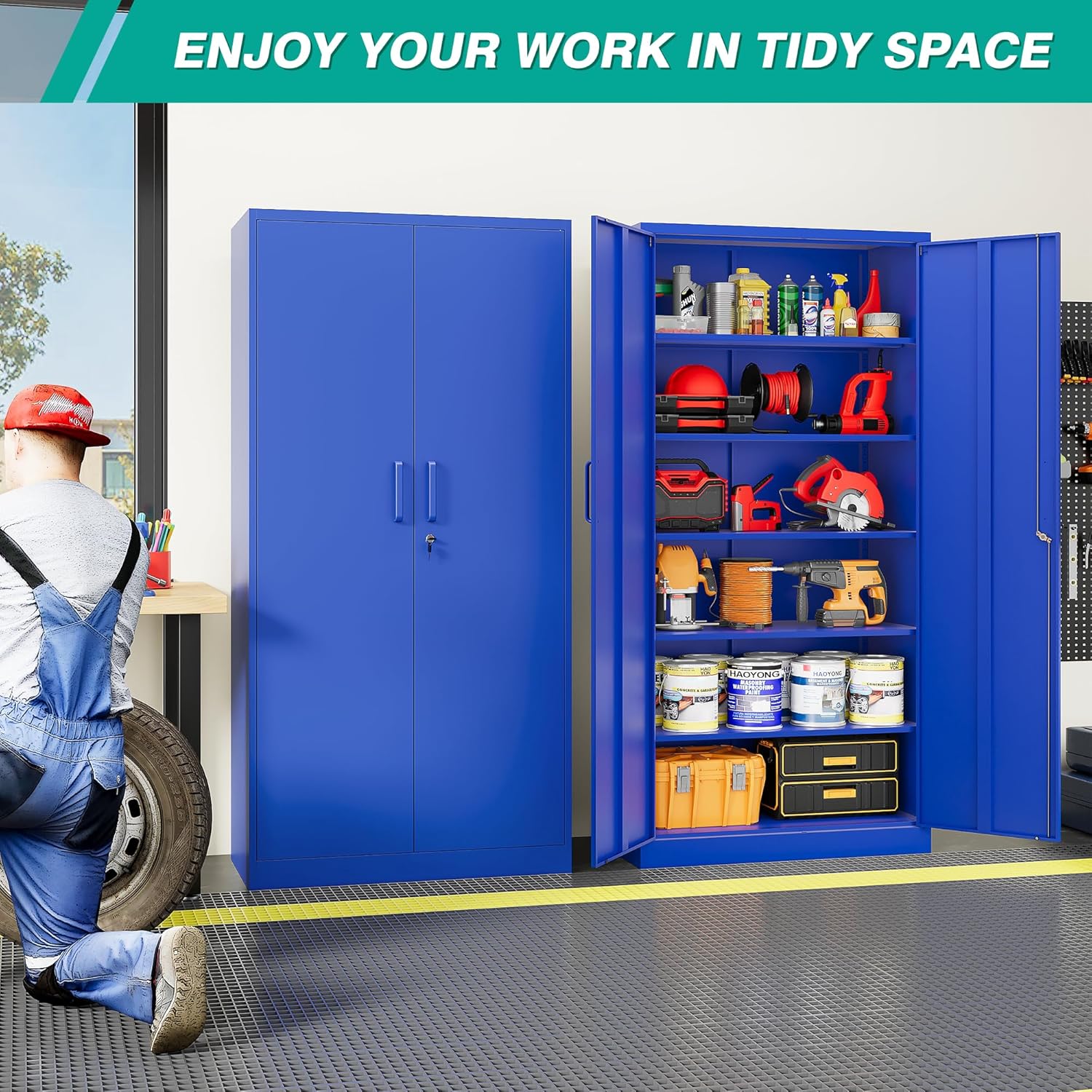 Metal Storage Cabinet with 2 Doors and 6 Shelves, Black Metal Cabinet with Lock, 71 Inch Lockable Garage Storage Cabinet