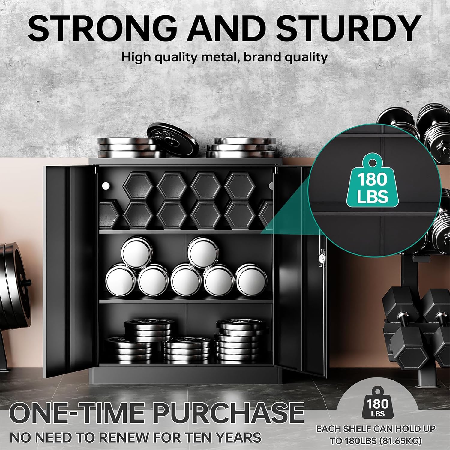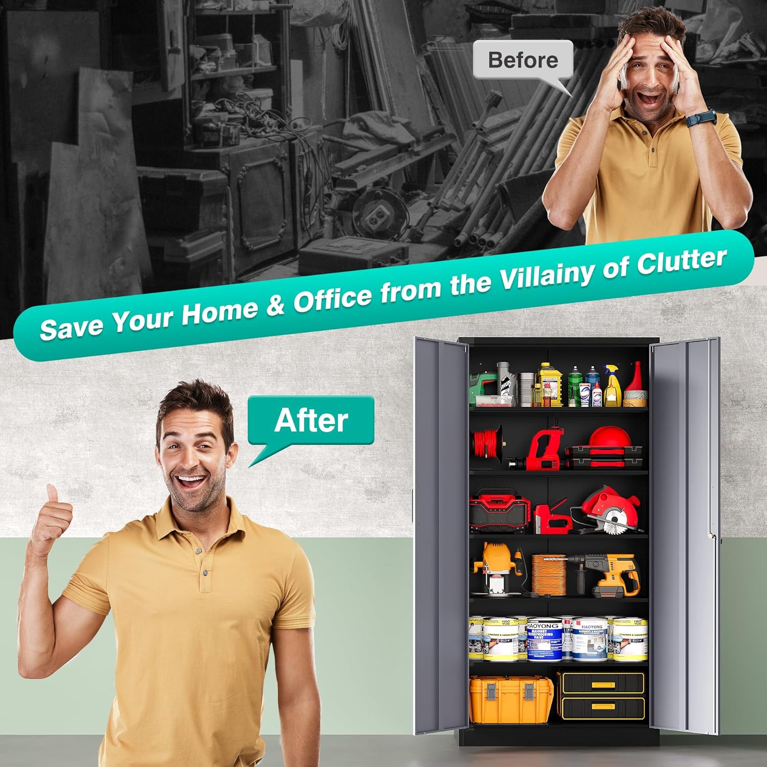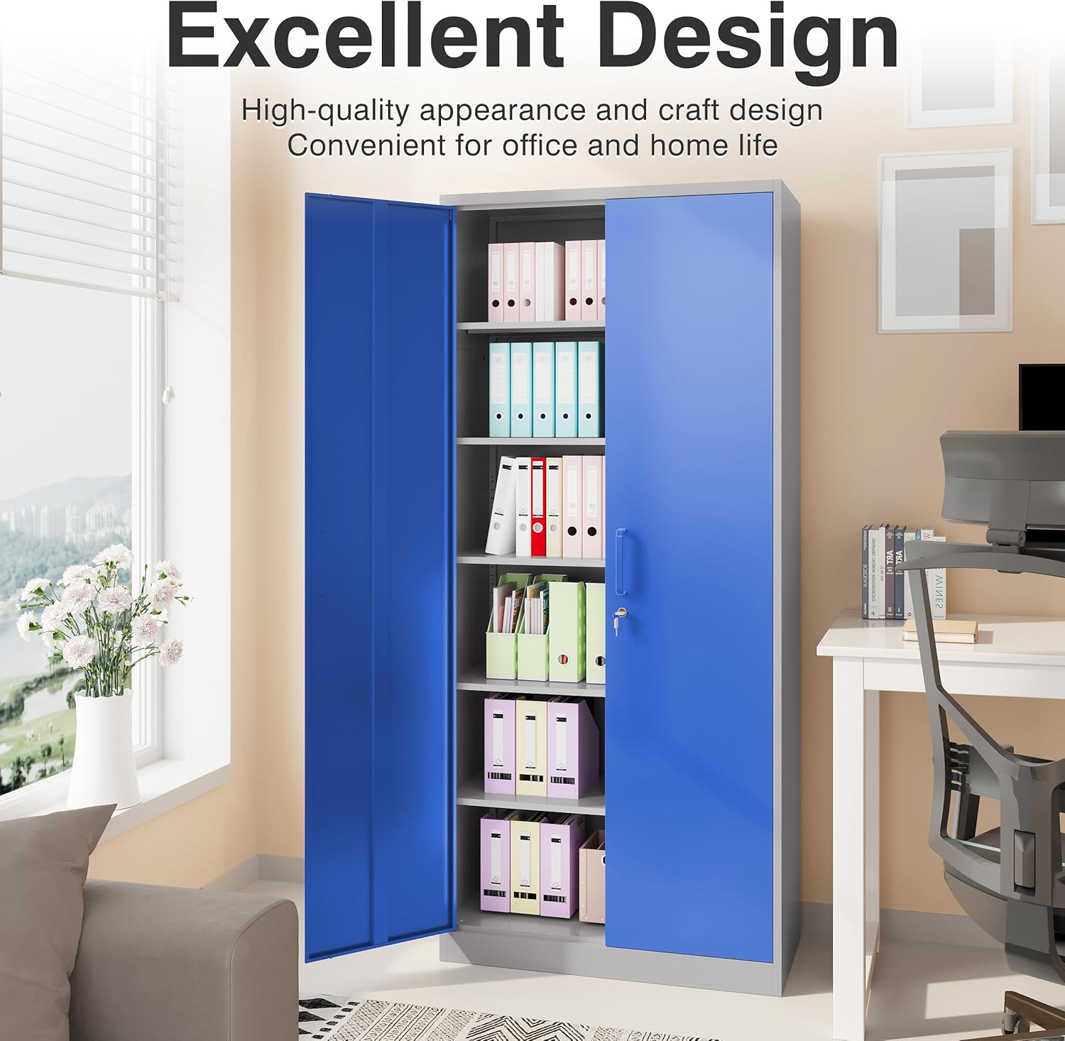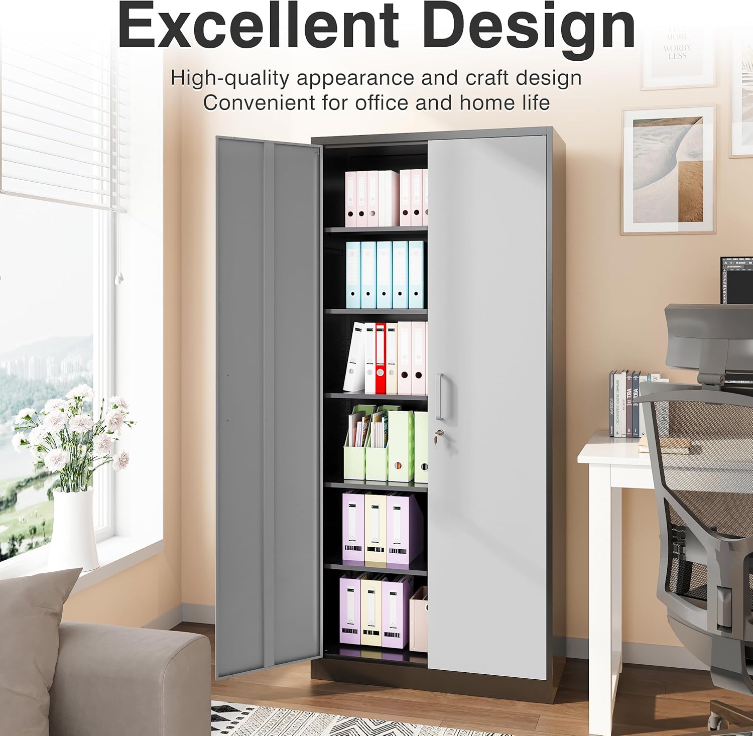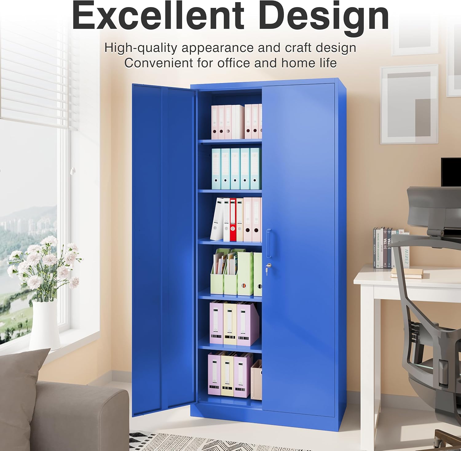 Metal Storage Cabinet with 2 Doors and 6 Shelves, Black Metal Cabinet with Lock, 71 Inch Lockable Garage Storage Cabinet
