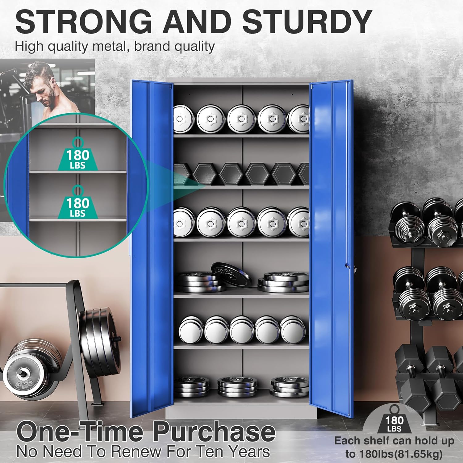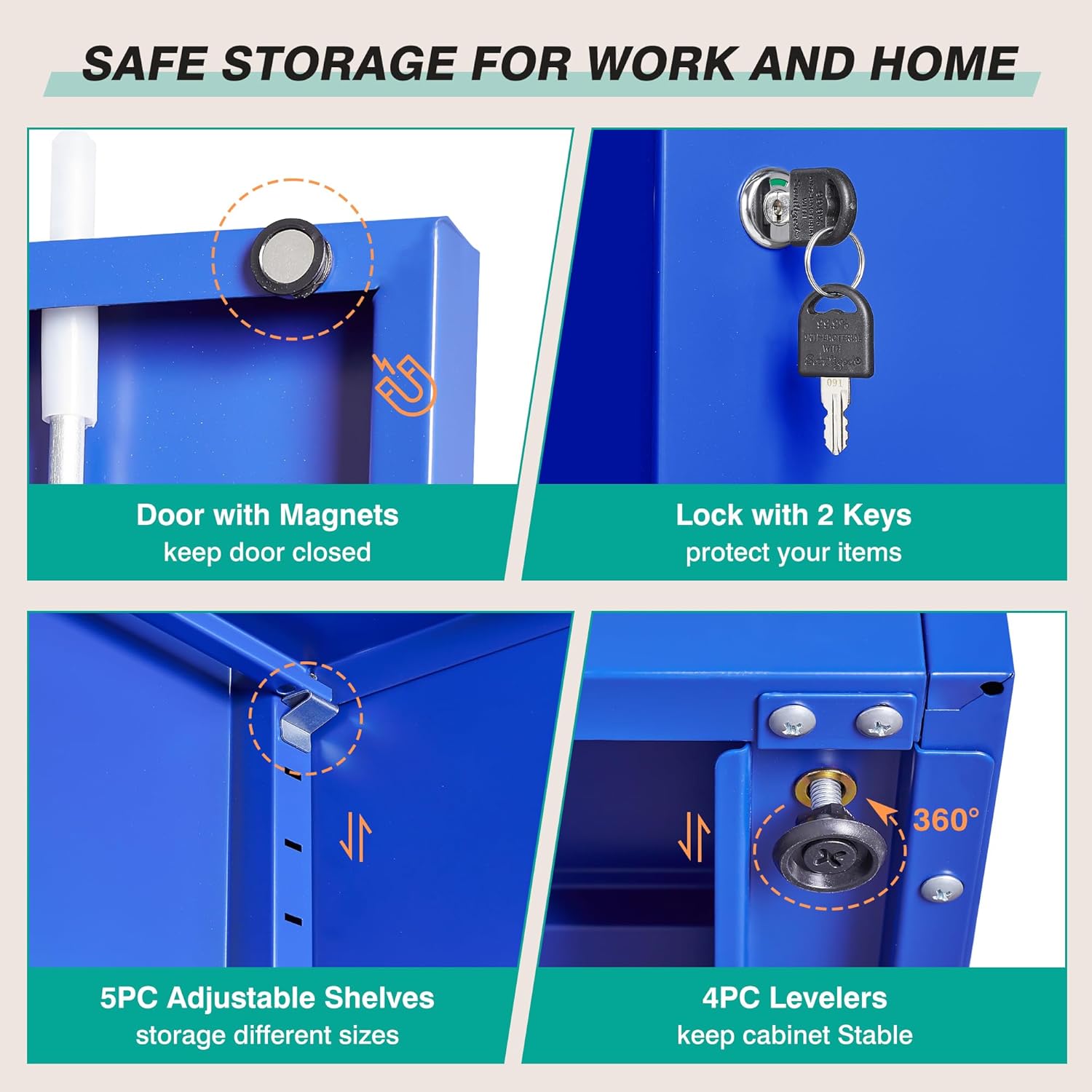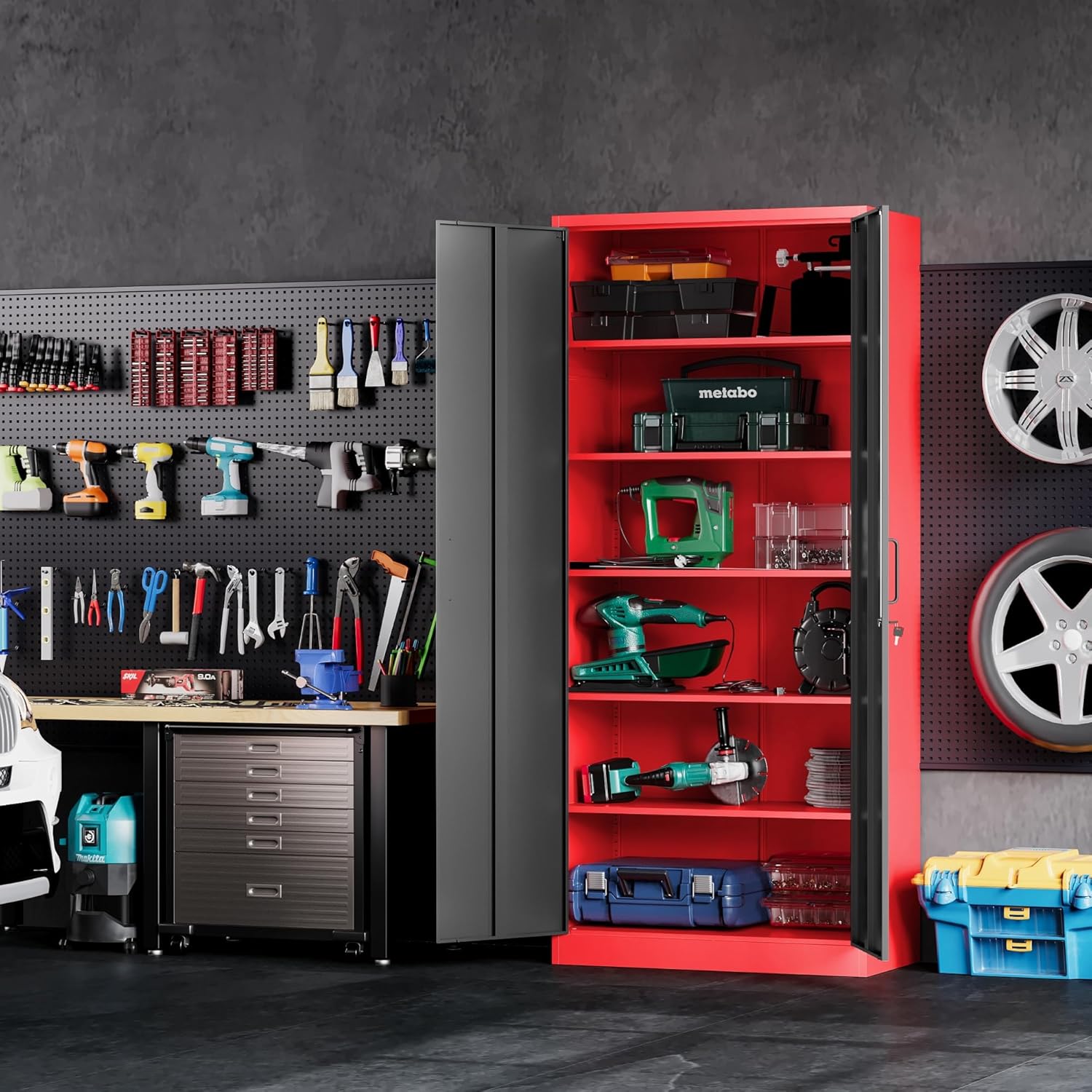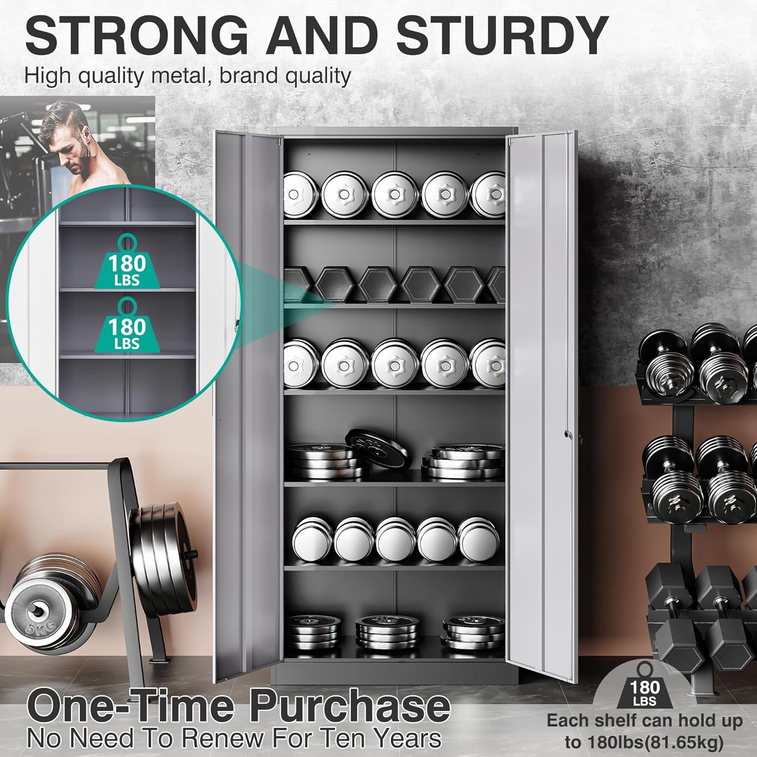 Metal Storage Cabinet with 2 Doors and 6 Shelves, Black Metal Cabinet with Lock, 71 Inch Lockable Garage Storage Cabinet