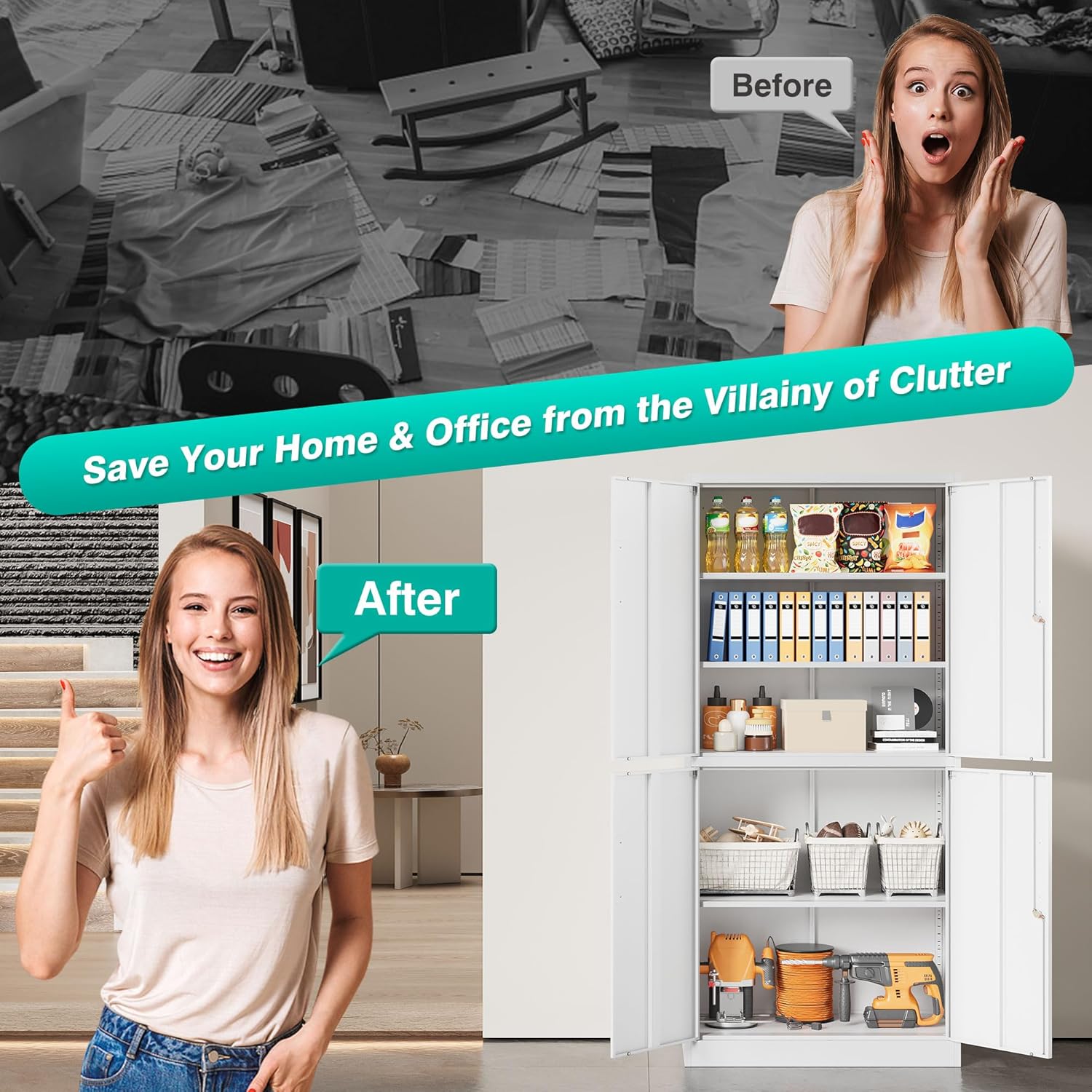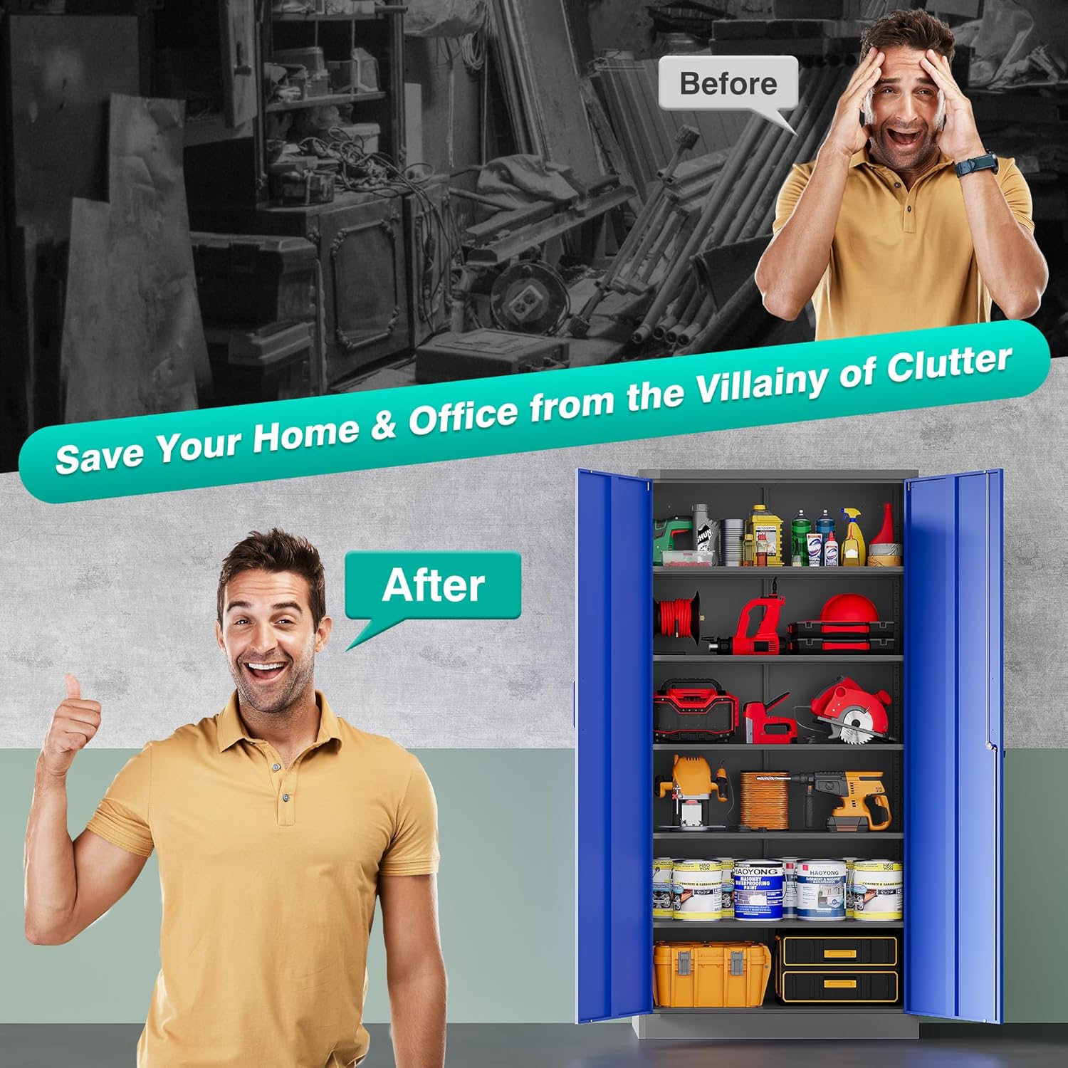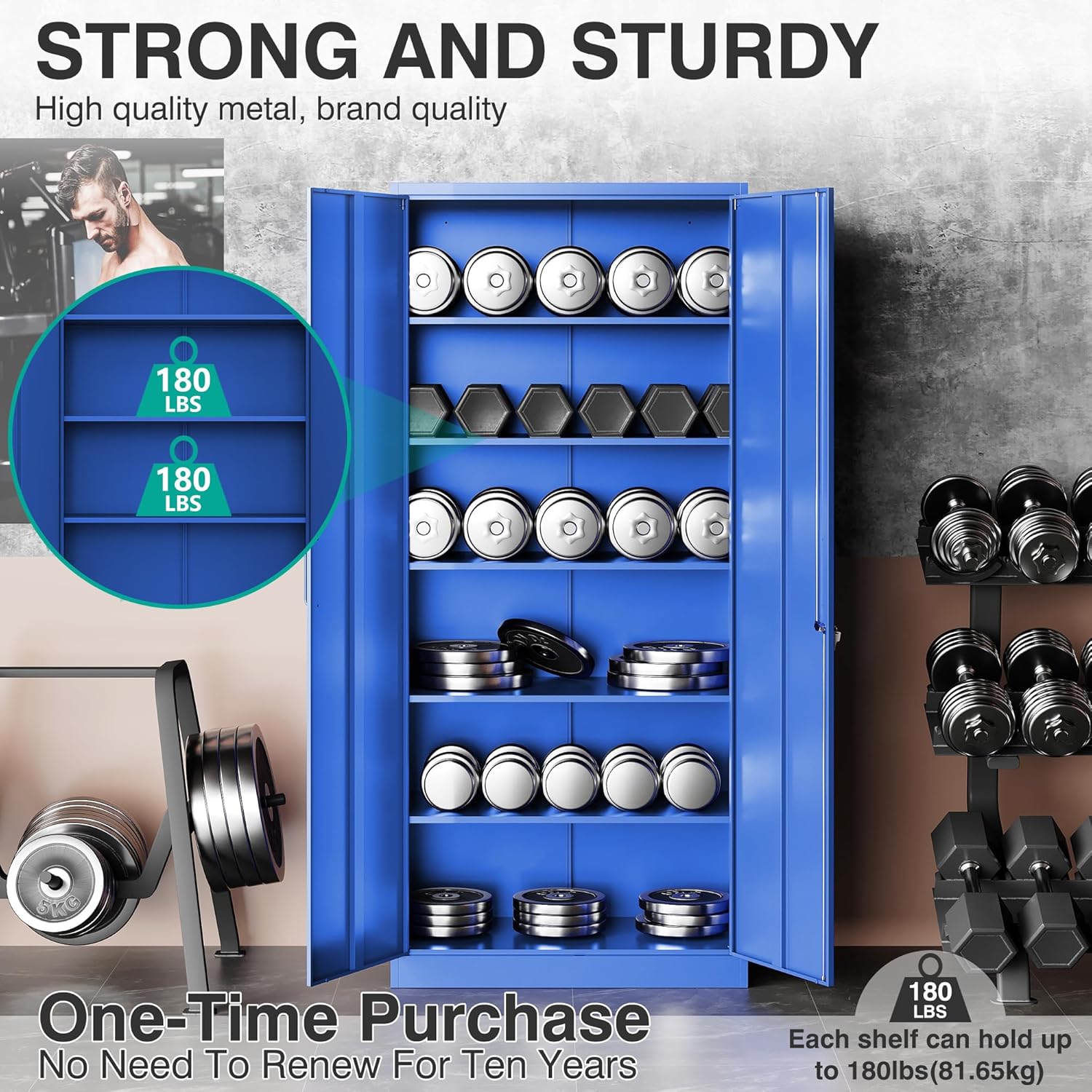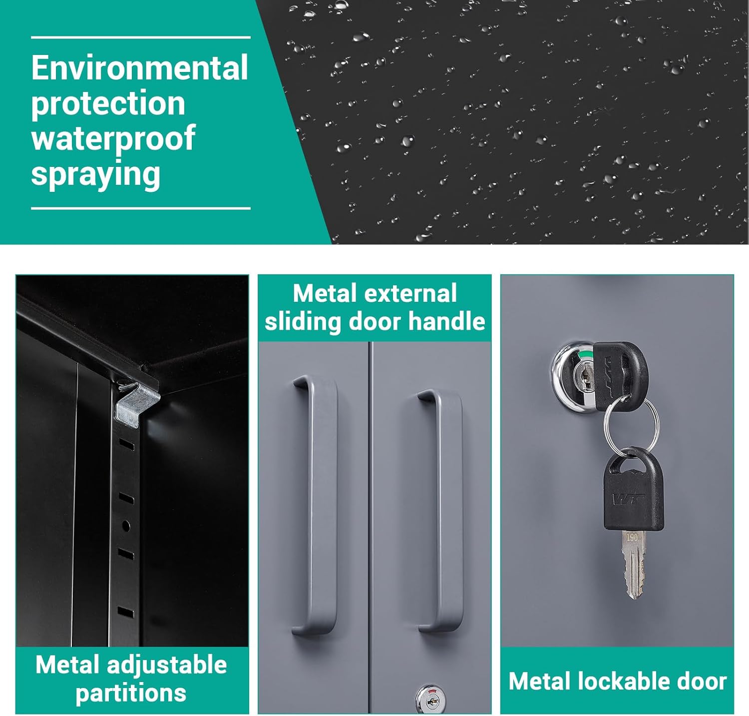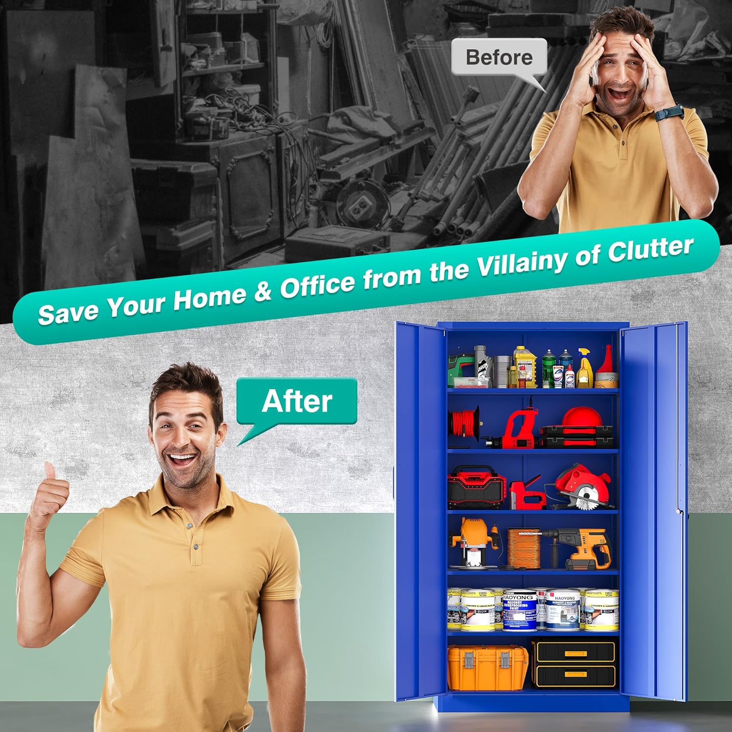 Metal Storage Cabinet with 2 Doors and 6 Shelves, Black Metal Cabinet with Lock, 71 Inch Lockable Garage Storage Cabinet