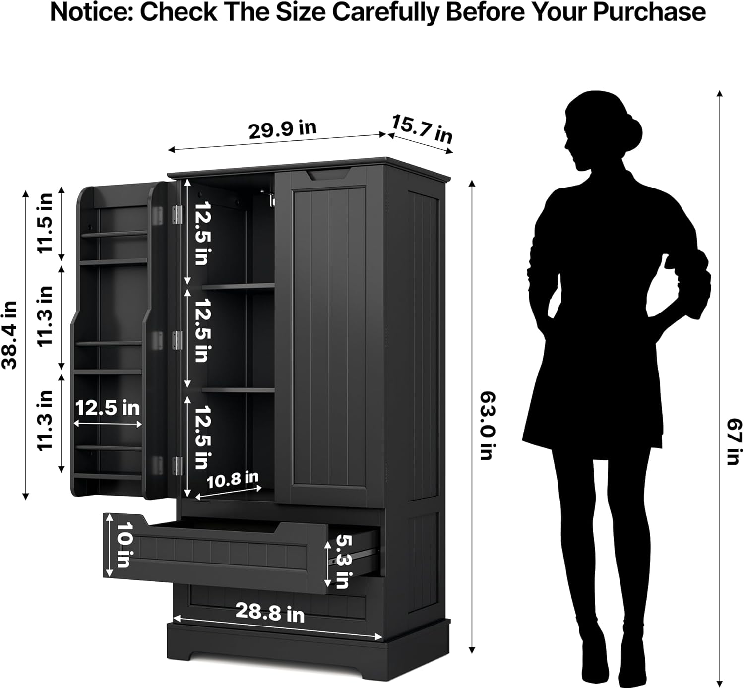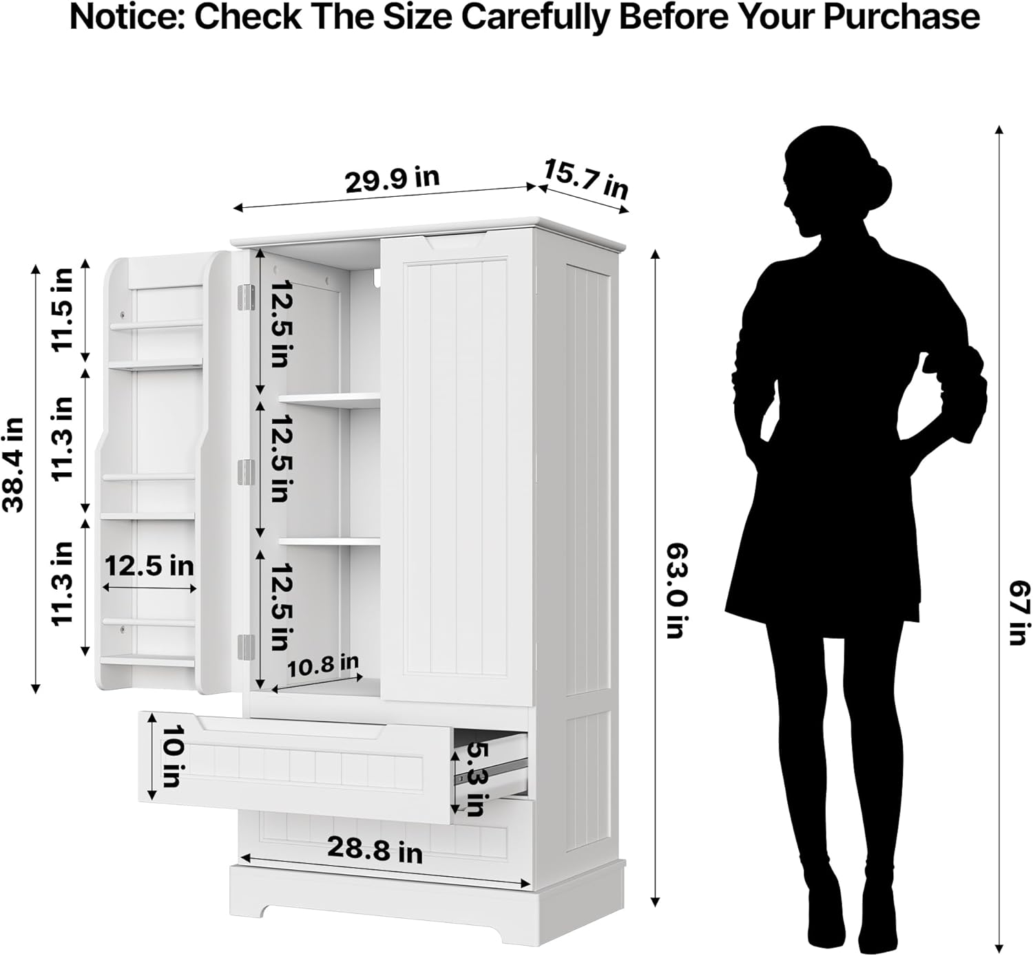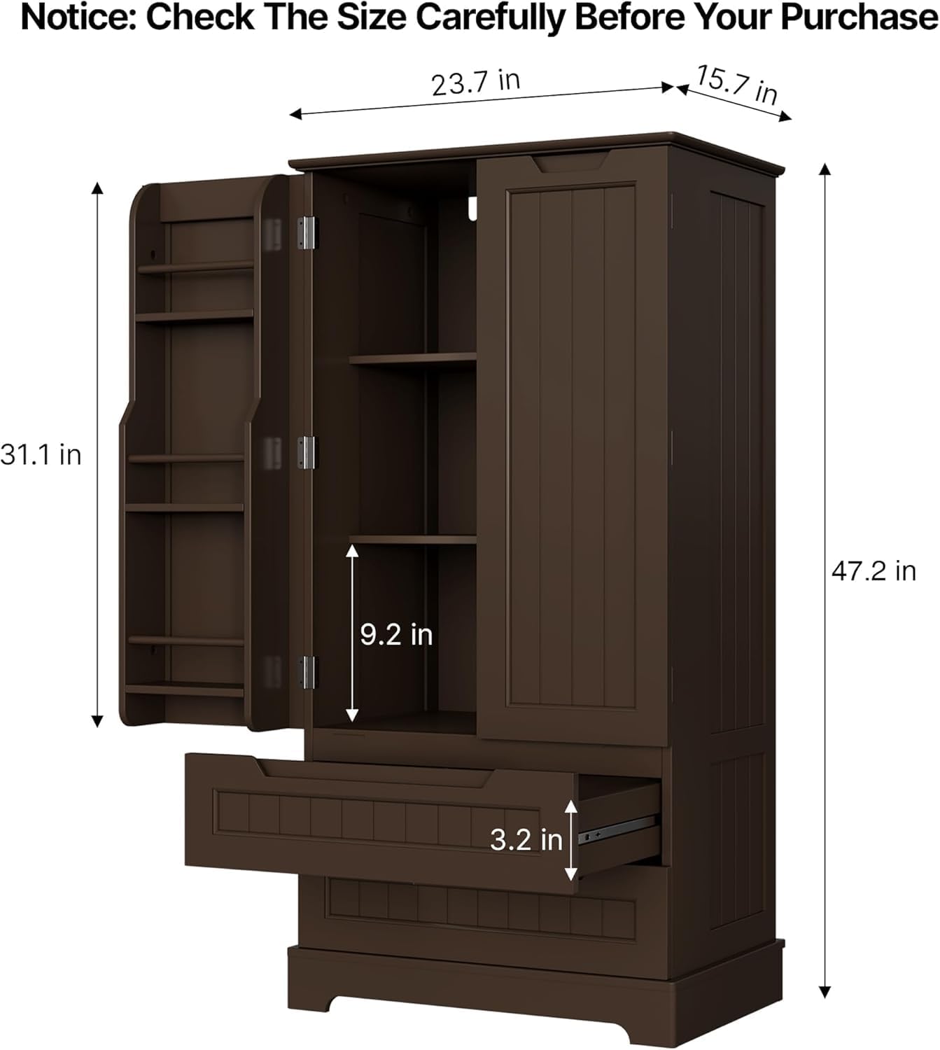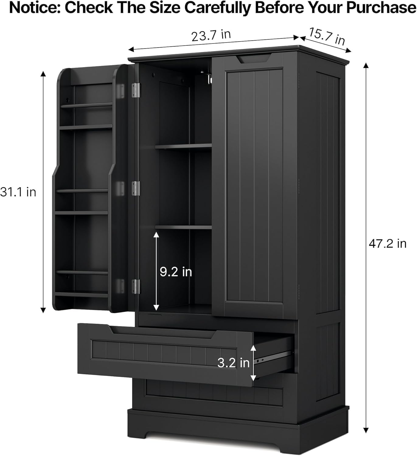 Gizoon Kitchen Pantry Cabinet with Drawers Freestanding Bathroom Storage Cabinet with Doors and Shelves, 47 Inch Small Pantry Cabinet