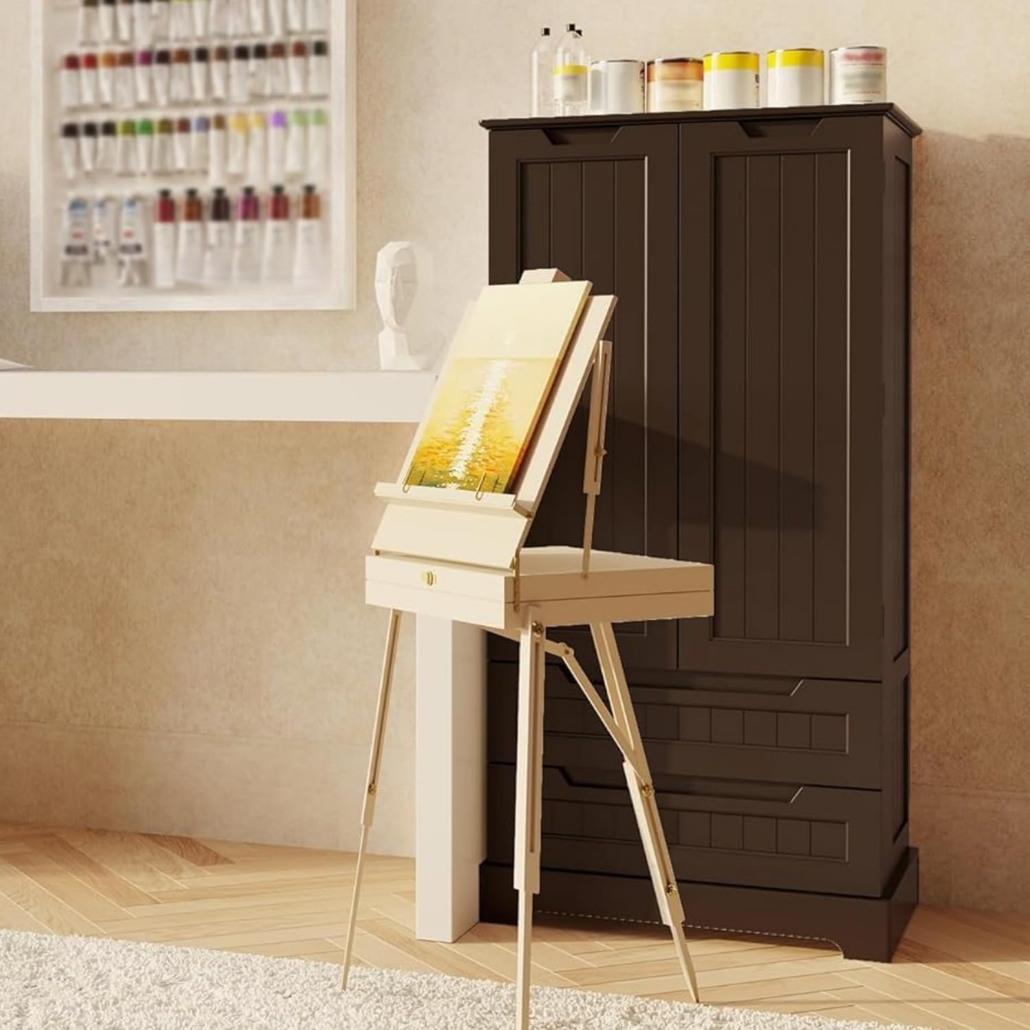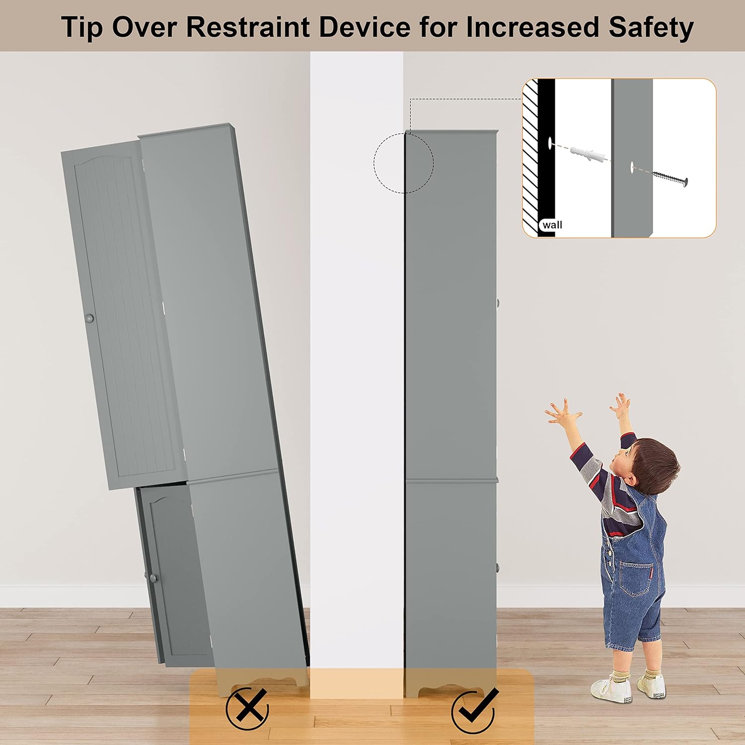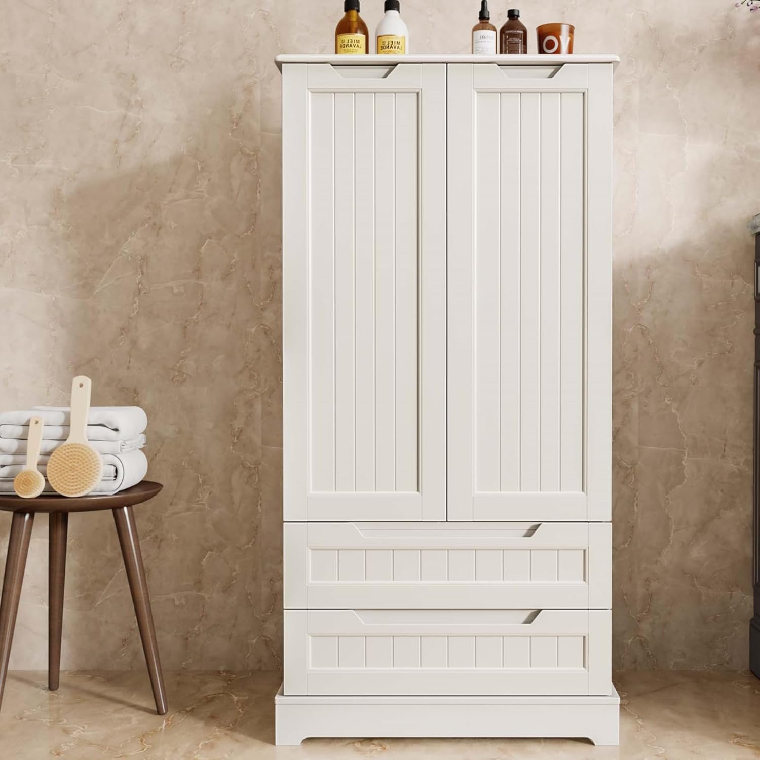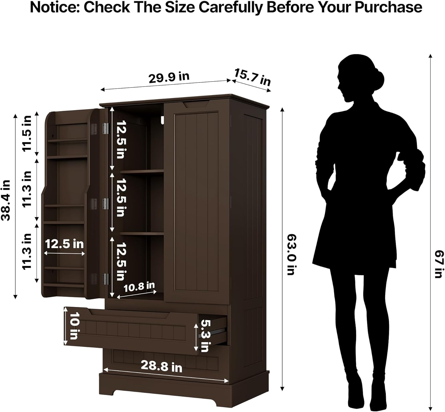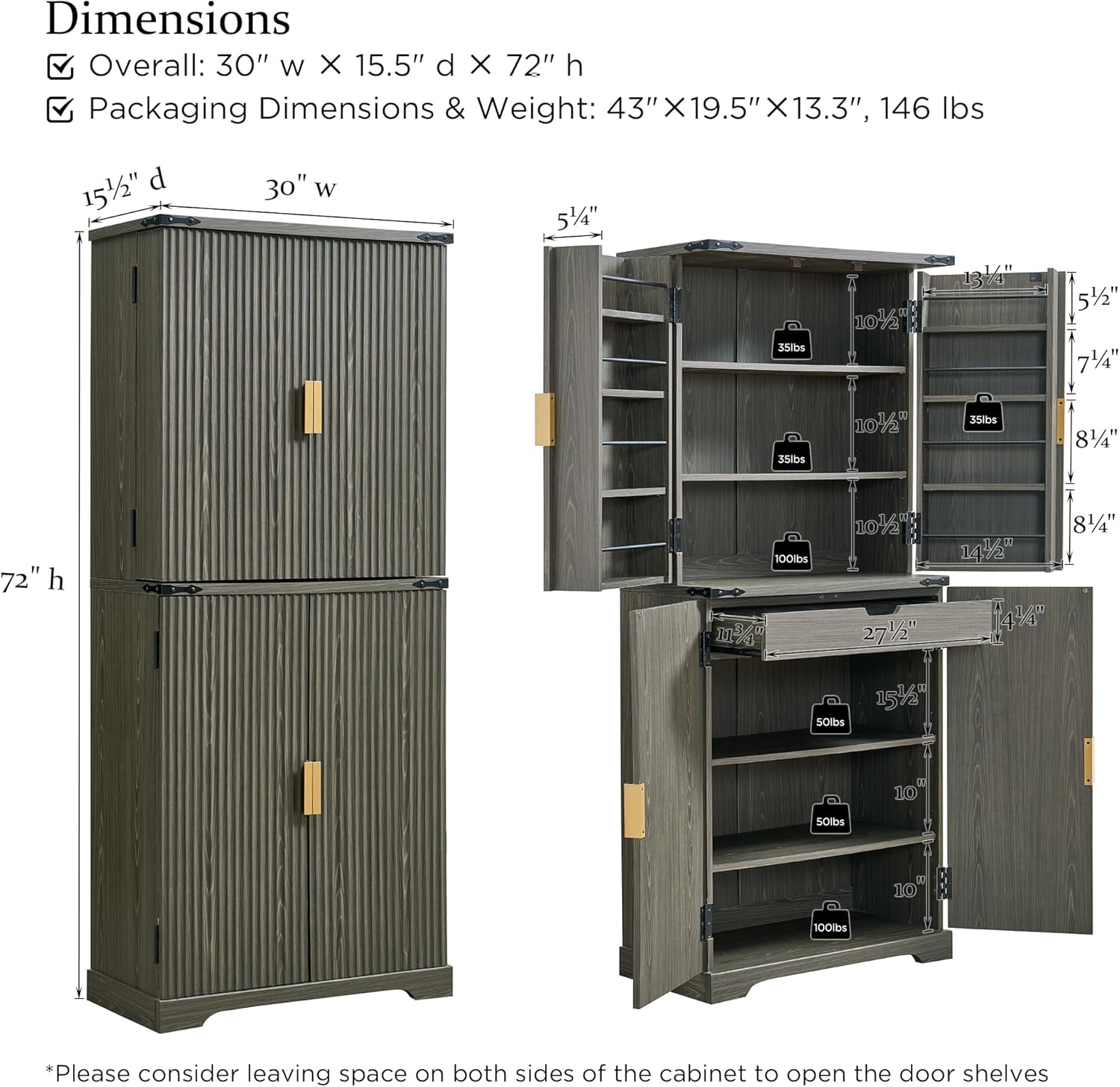 Gizoon Kitchen Pantry Cabinet with Drawers Freestanding Bathroom Storage Cabinet with Doors and Shelves, 47 Inch Small Pantry Cabinet