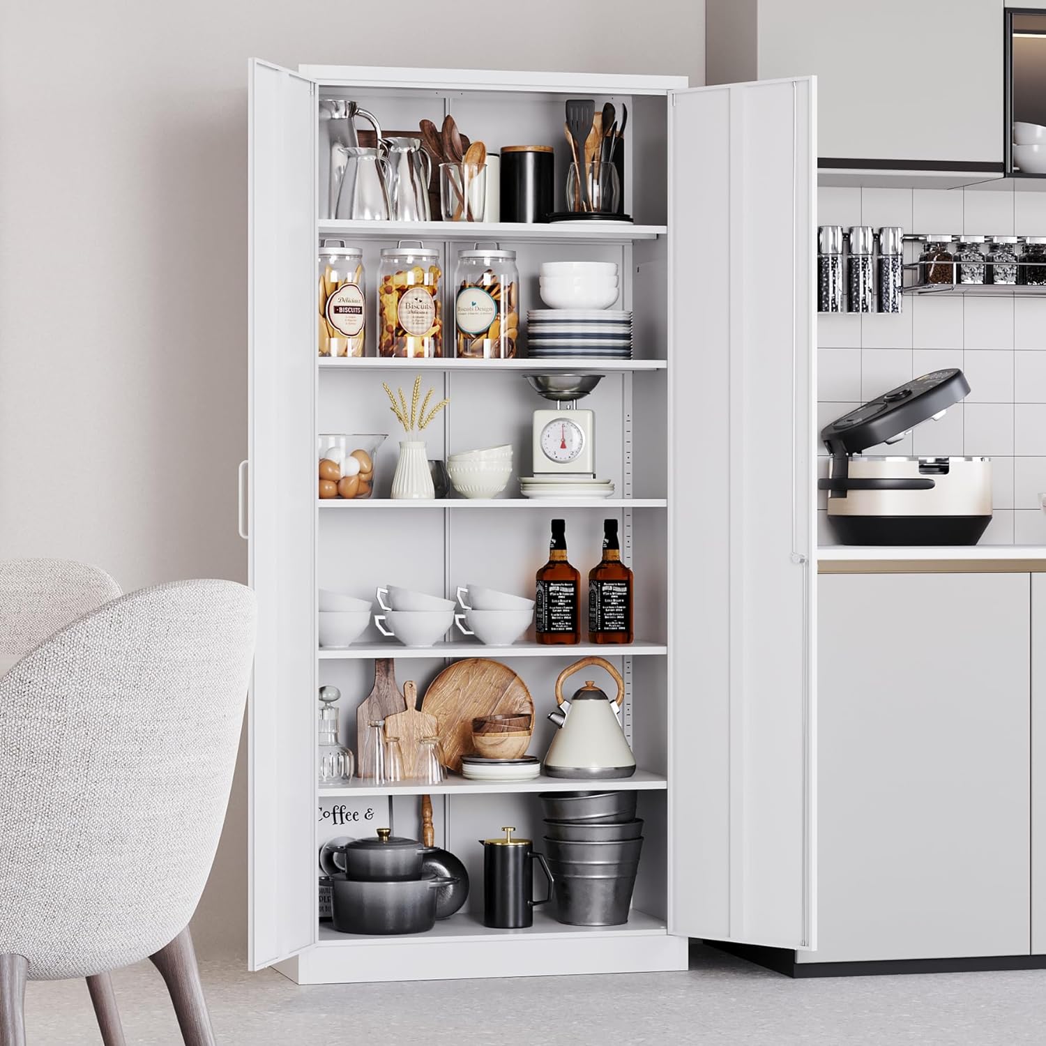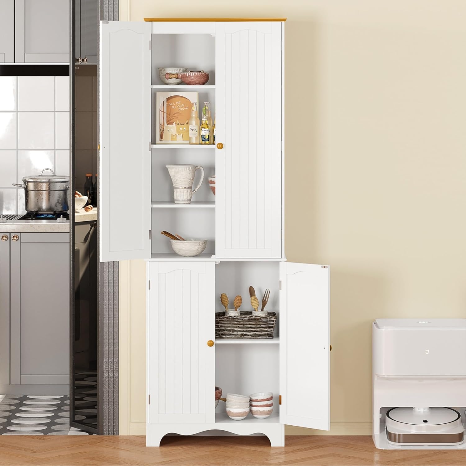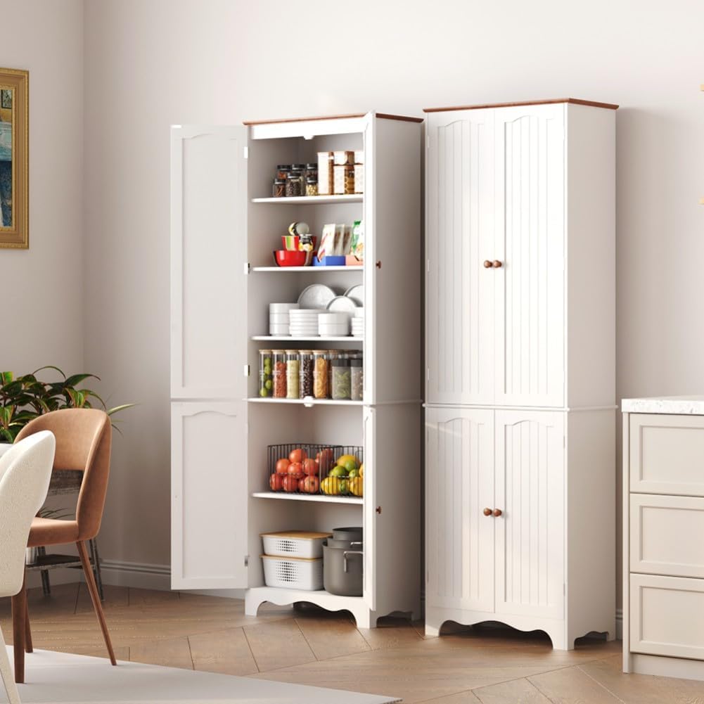 Tall Pantry Cabinet, Freestanding Storage Cabinet, Wooden Kitchen Pantry with 4 Doors and 5 Shelves, 72" Floor Cabinet Organizer