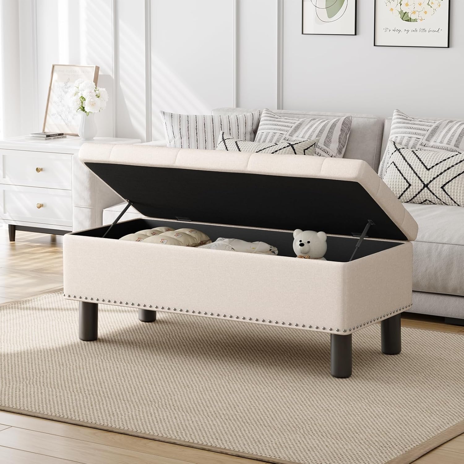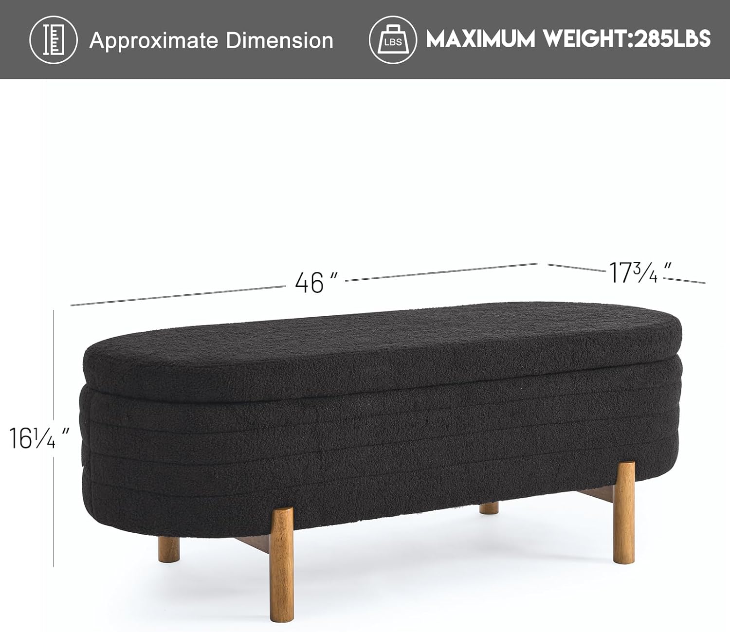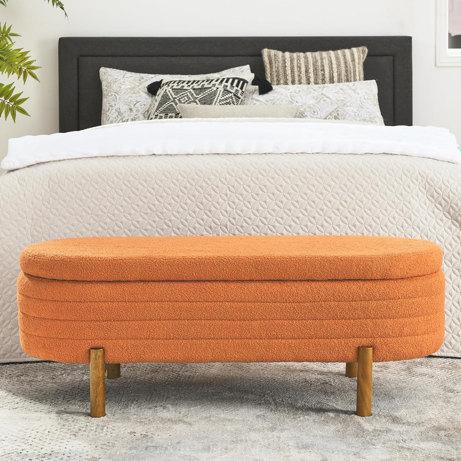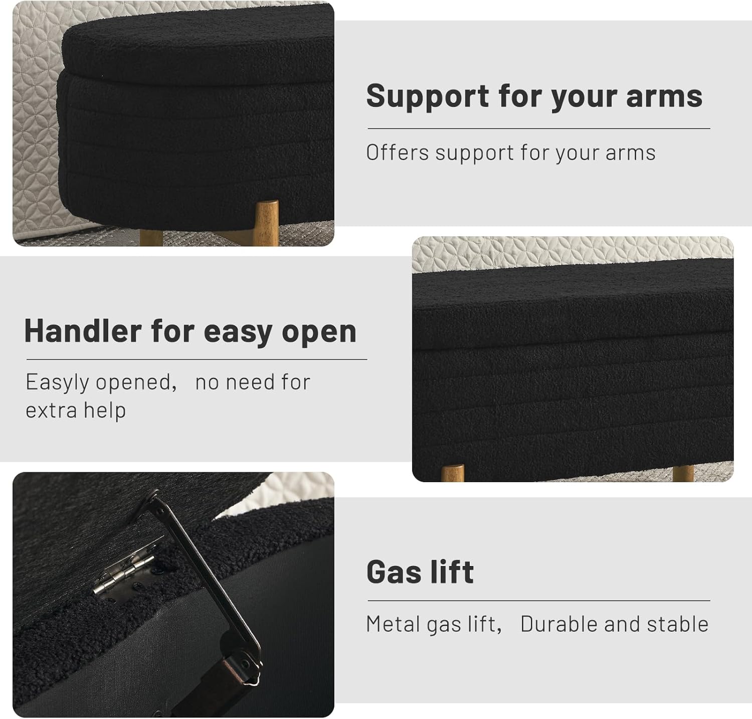 Furniliving Modern Storage Ottoman Bench, Sherpa Ottoman End of Bed Bench with Solid Wood Legs Upholstered Ottoman Benches with Storage Indoor Bench