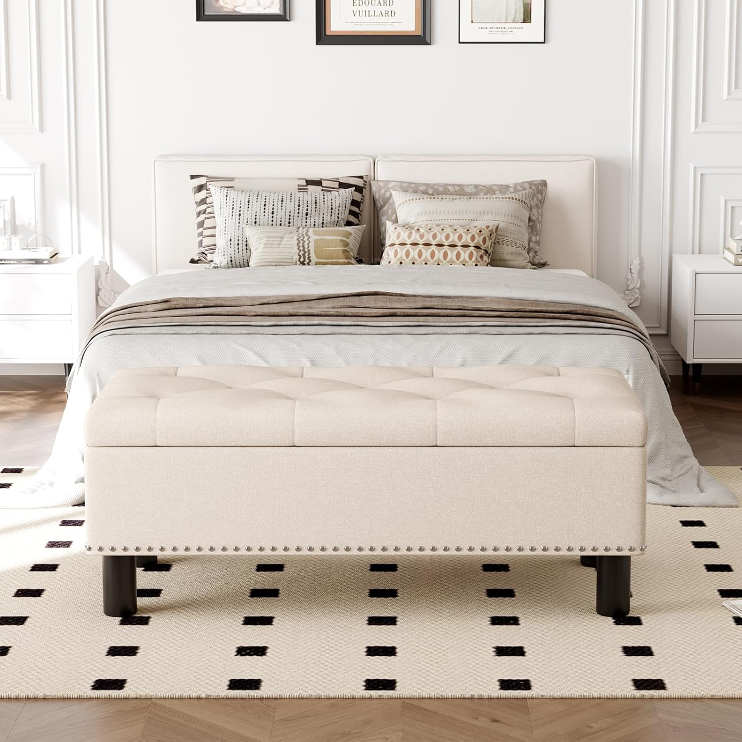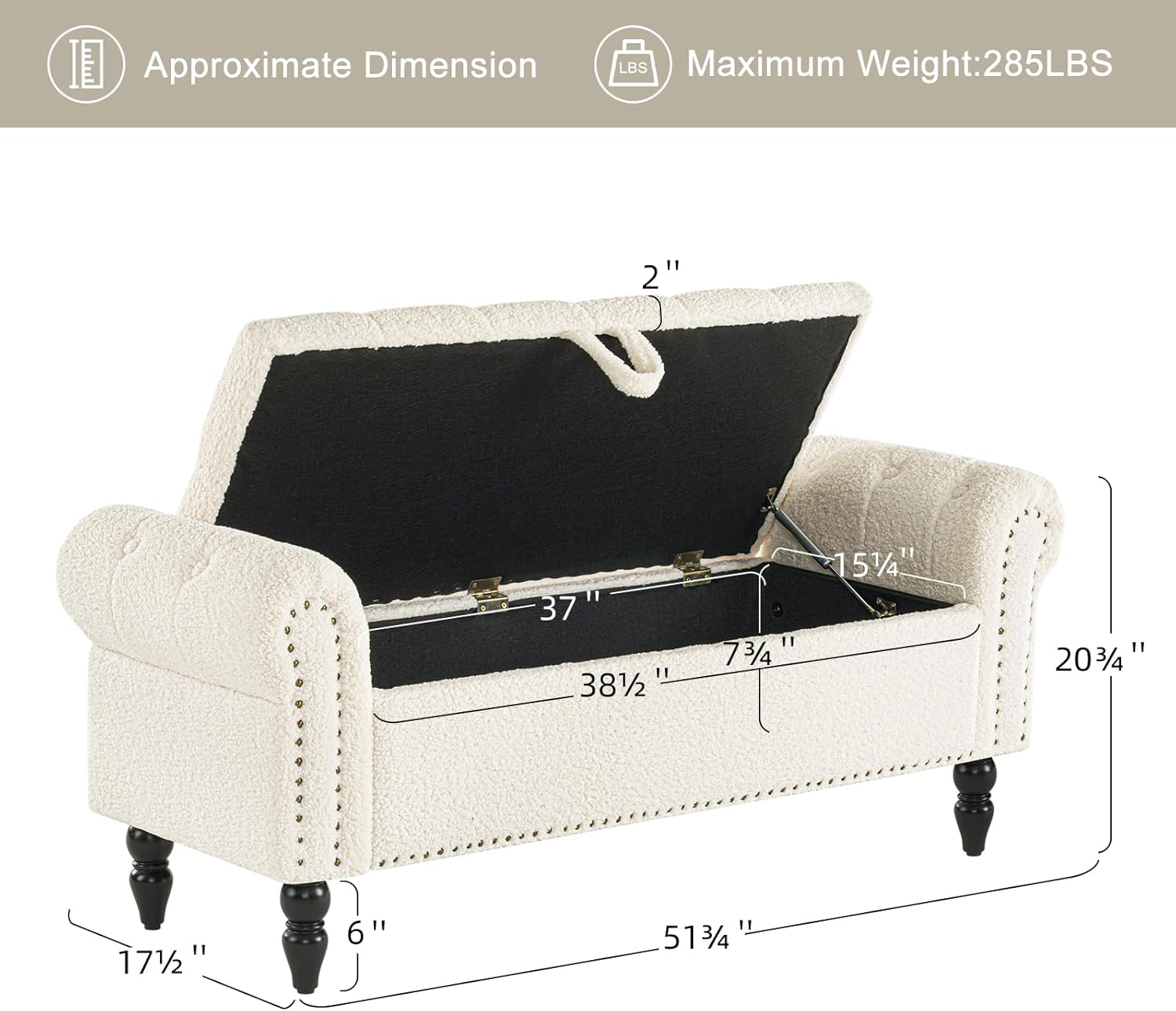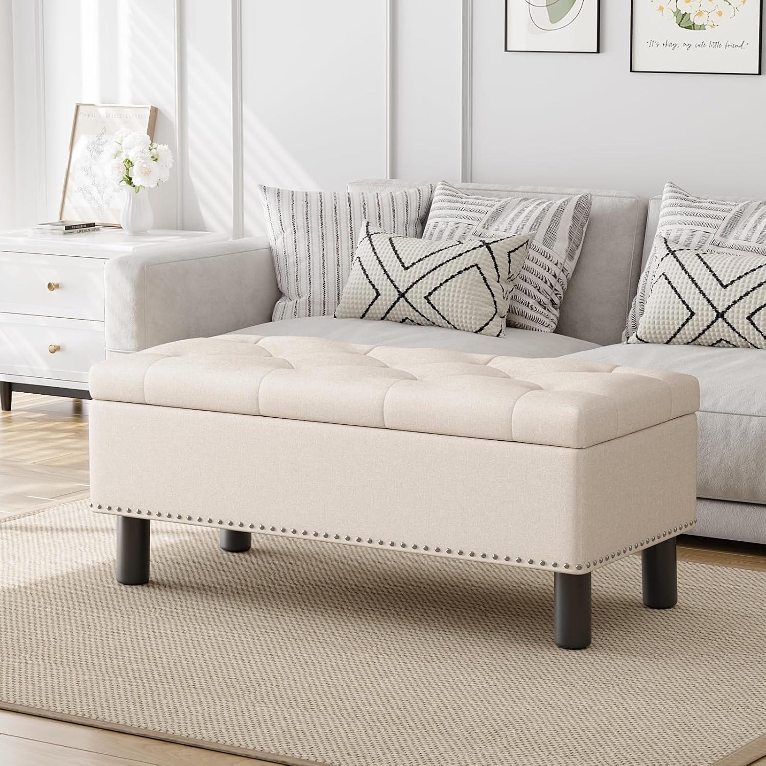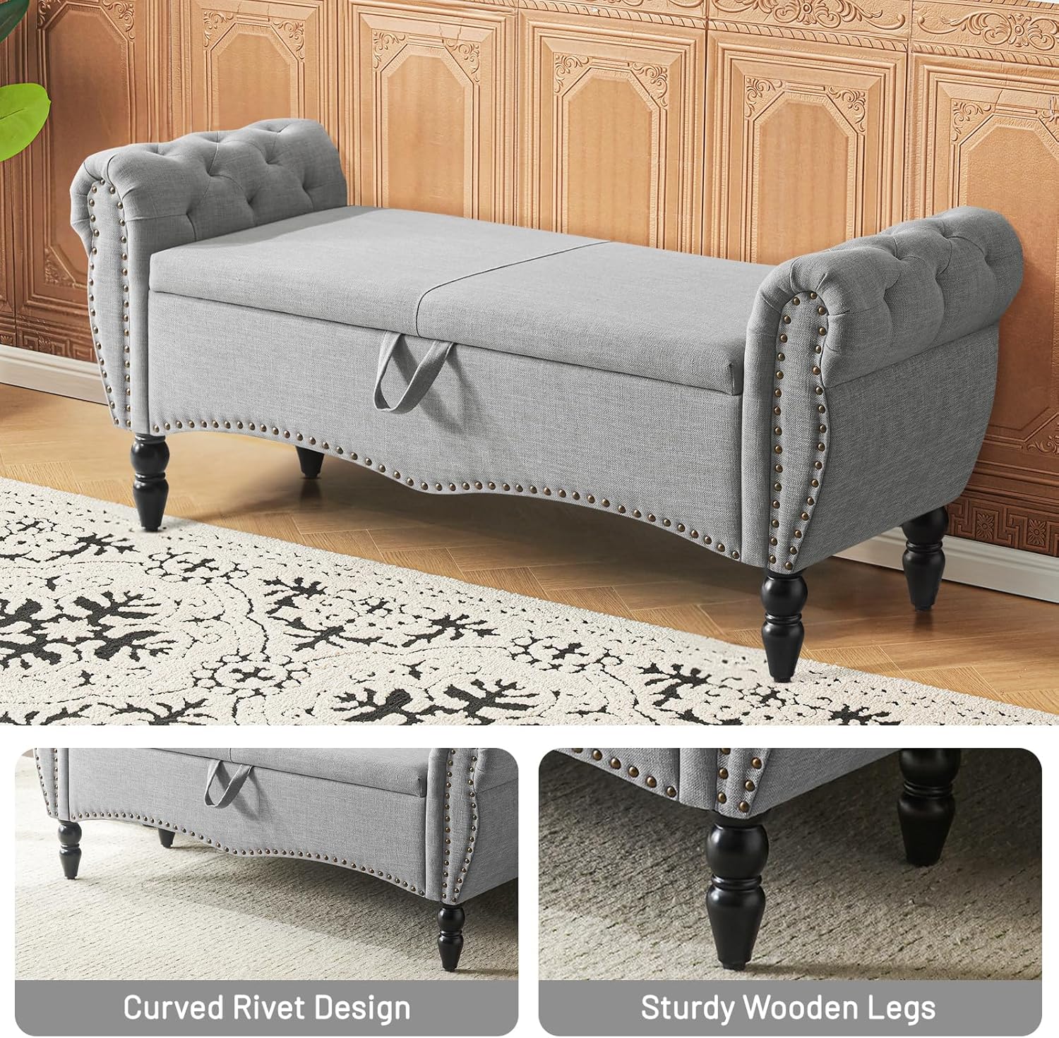 Furniliving Modern Storage Ottoman Bench, Sherpa Ottoman End of Bed Bench with Solid Wood Legs Upholstered Ottoman Benches with Storage Indoor Bench