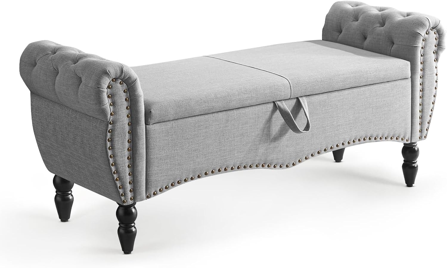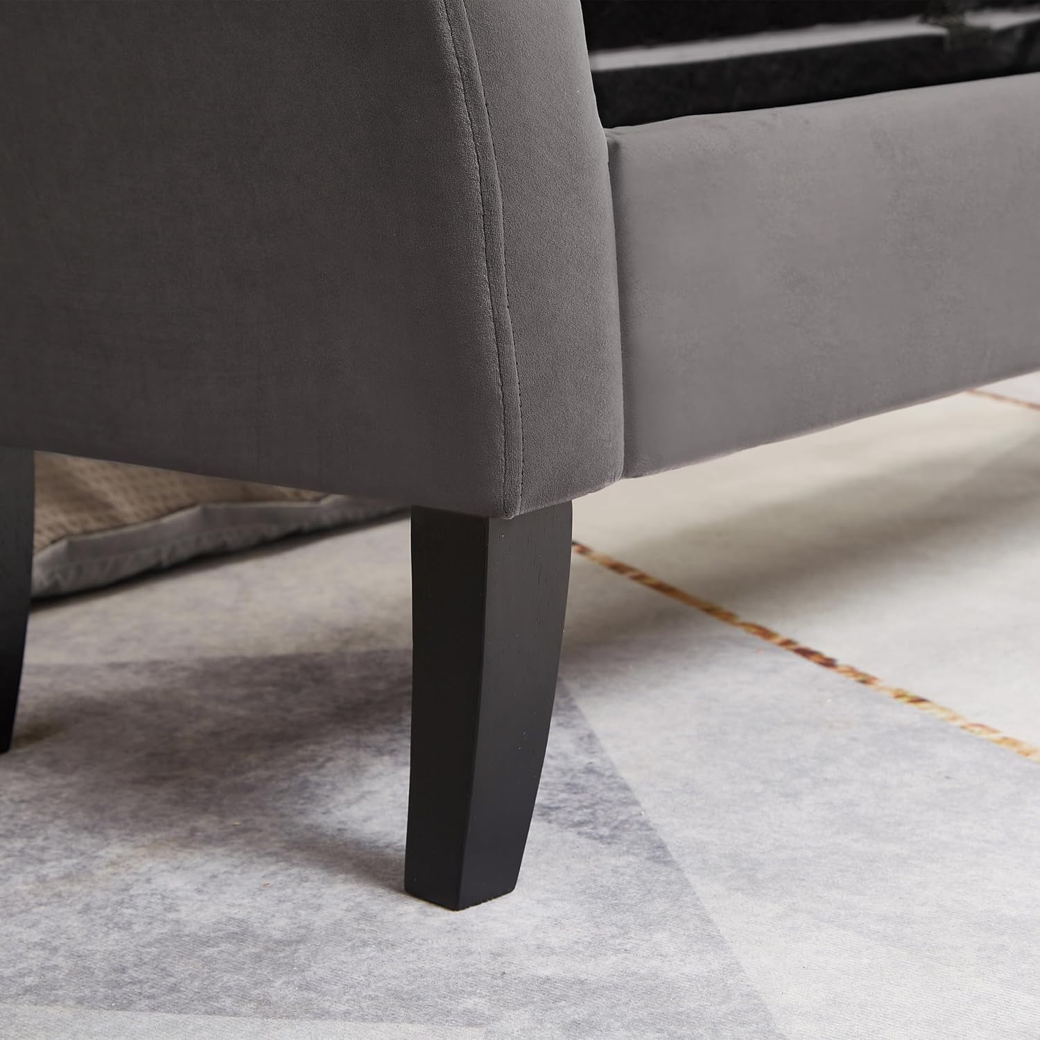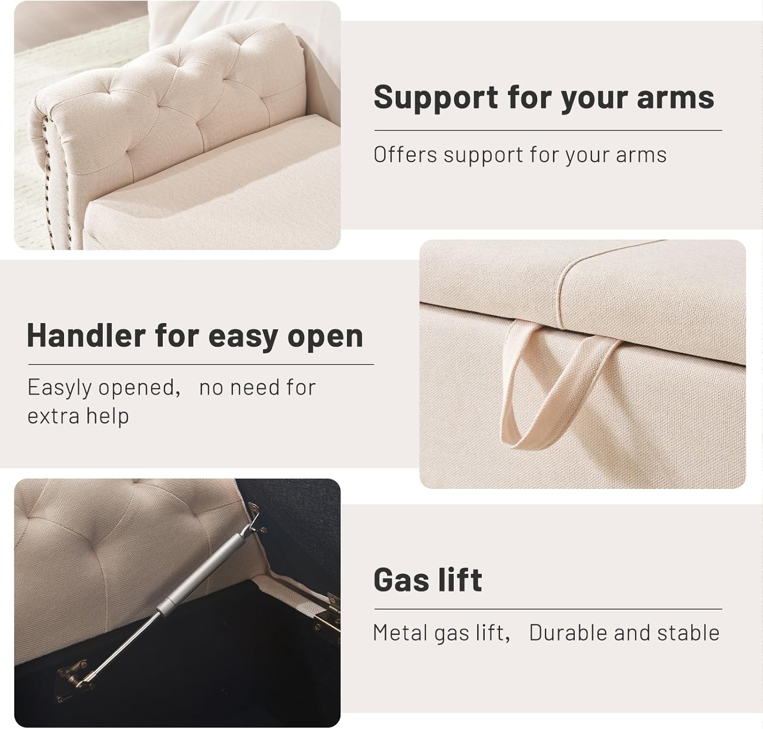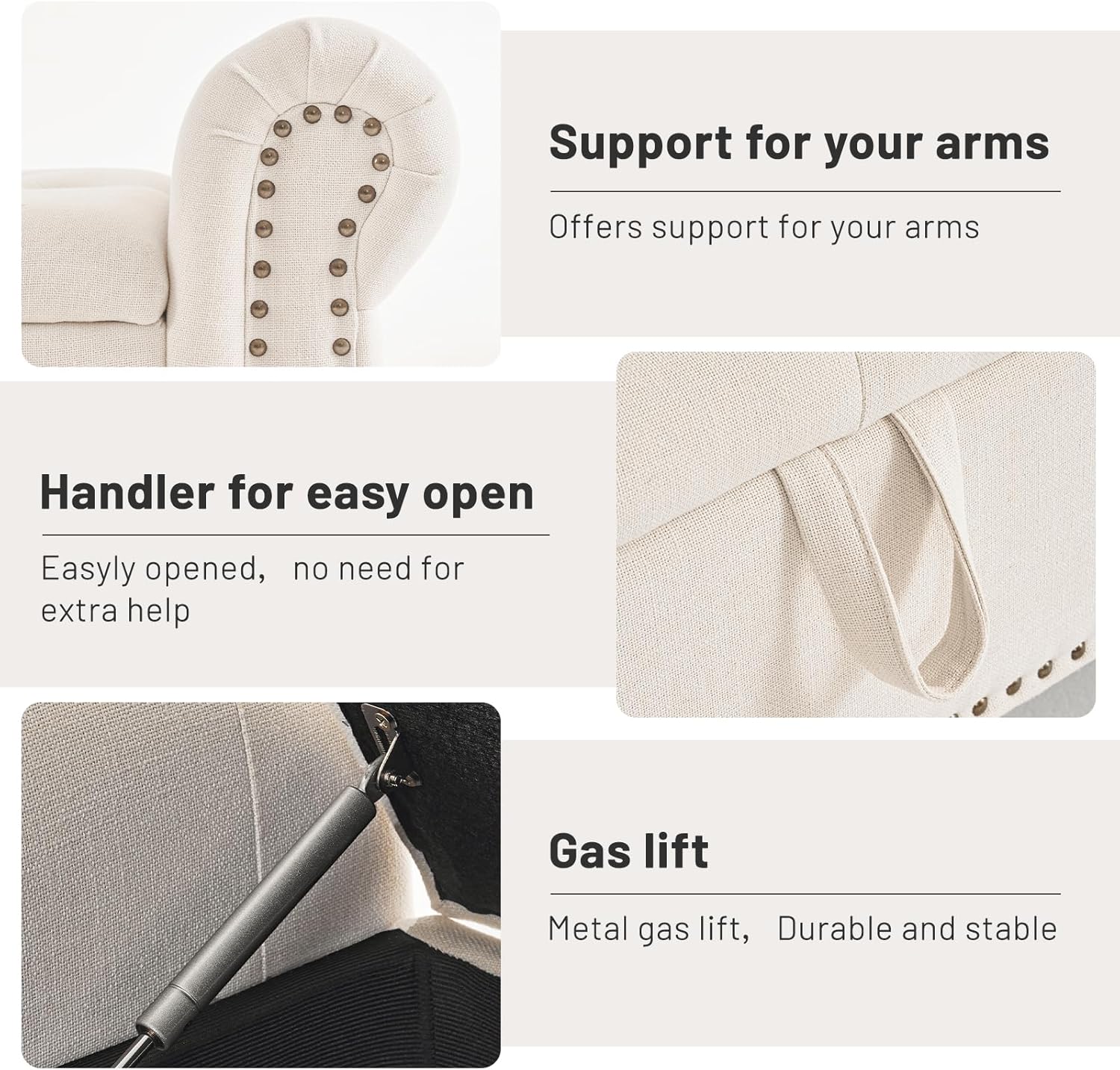 Furniliving Modern Storage Ottoman Bench, Sherpa Ottoman End of Bed Bench with Solid Wood Legs Upholstered Ottoman Benches with Storage Indoor Bench